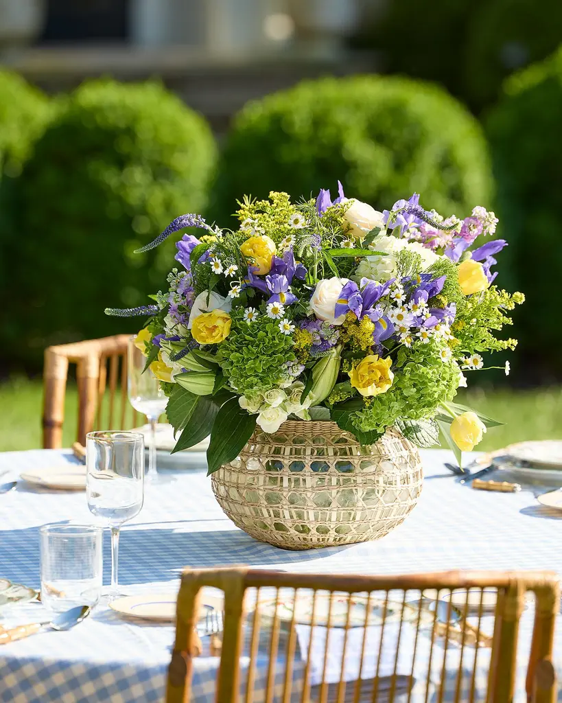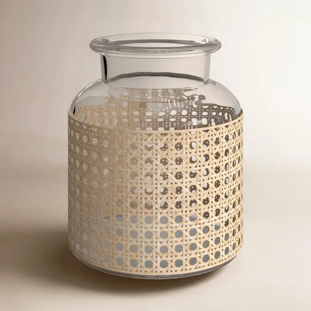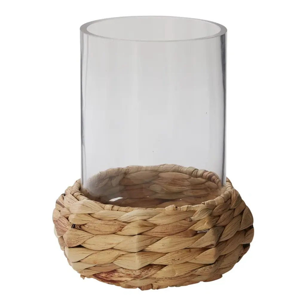 Handwrapped in seagrass and palm leaves, these vases add a touch of coastal charm. The natural flourish accentuates the graceful shape and is the perfect complement to fresh florals.