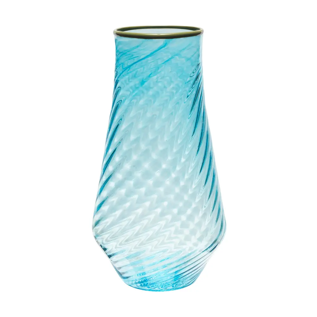 Celerie Kemble Glassware For Chairish Twist Vase In Capri Blue With Pea Green Rim