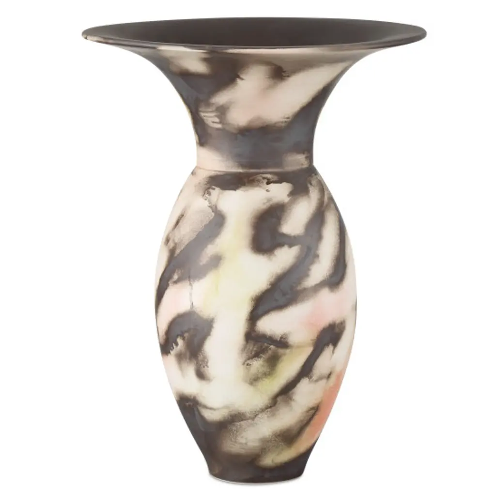 You'll want to see the Celestial Vase from every angle, as a different pattern will come into view depending upon the direction from which it is seen. Made of porcelain, the morphing patterns hold hints of black, pale green, and pale red hues. This is a hand-thrown creation with motifs that could easily represent the whole of the cosmic universe.