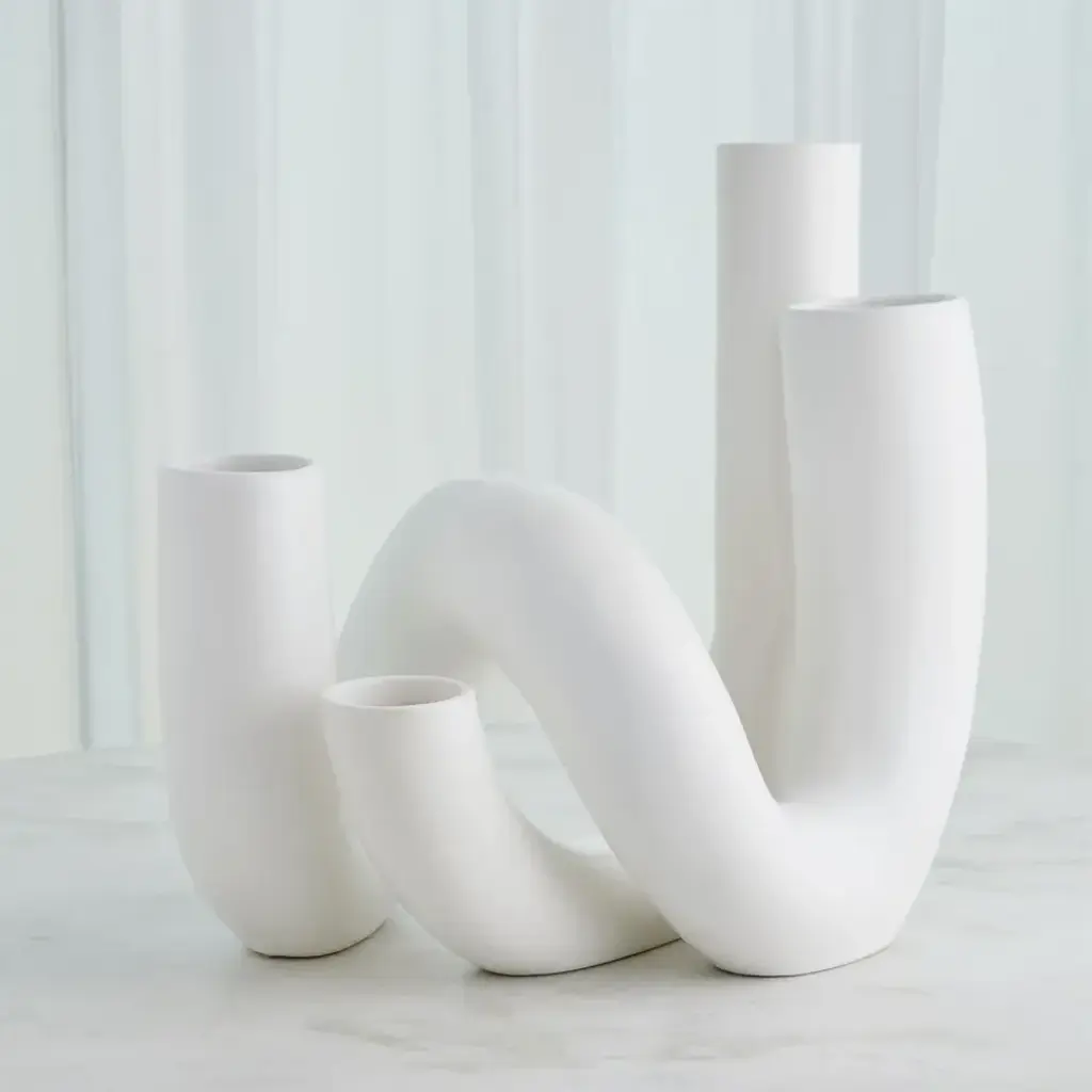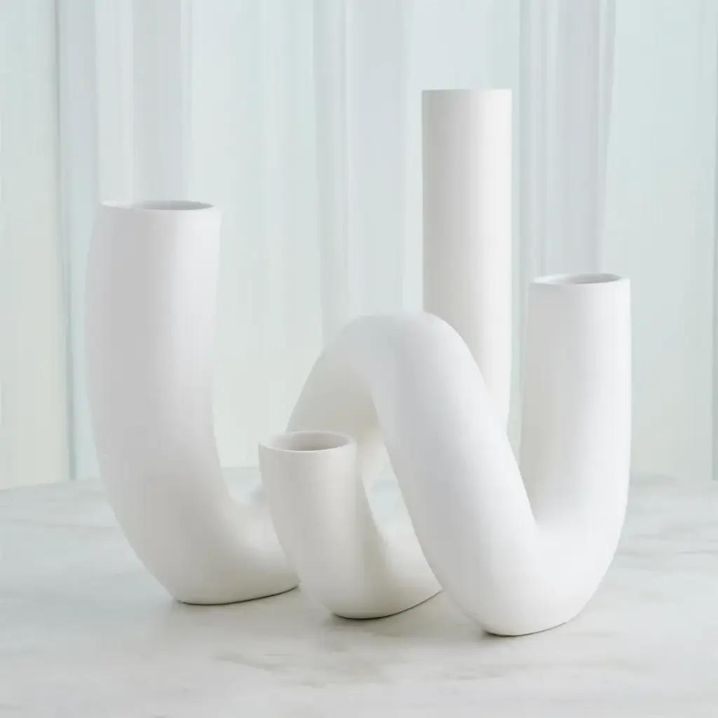 Handcrafted by skilled Portuguese artisans, the Cellentani Vase Set is a slip-molded ceramic masterpiece that pays homage to the intricate Cellentani pasta shape, reimagined as an awe-inspiring piece of decor. The tubular corkscrew design body exudes a sense of fluidity and movement, making it a captivating focal point for any room. From a fashion forward perspective, Global Views offers accessories, furniture, statement lighting, and an assortment of rugs and mirrors to add beauty and joy to your home.