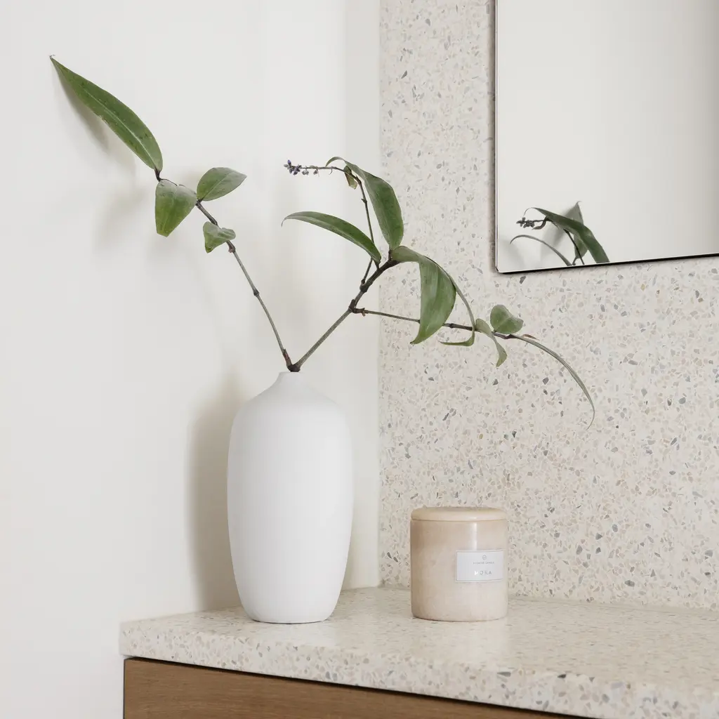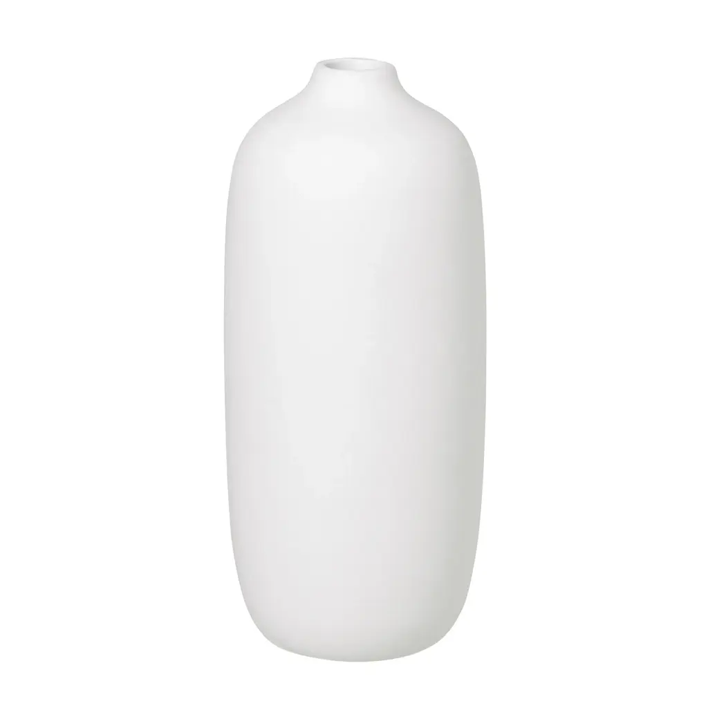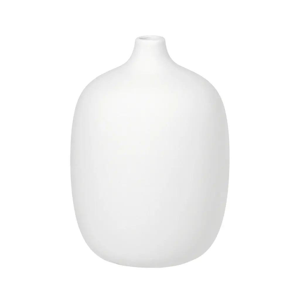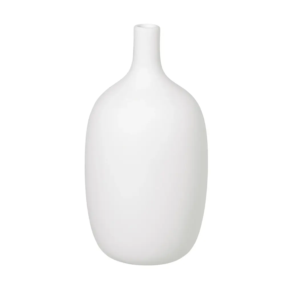 With the CEOLA Vase Ceramic by German designer Frederike Martens, the greens in your life have found a new home. The collection comprises five different shapes and sizes in either a soft white or a soft and sandy shade of khaki, but all with the same narrow mouth presenting the plant in a beautiful upright position while making sure the stem will not bend or break. The rounded, organic silhouette of the vase is inspired by traditional Japanese metal vases. The surfaces of the CEOLA series are made of resistant ceramics, glazed but left a bit course. Small bumps, slight color variations and visible lines are the result of the production process and add to the natural look as well as the unique character of every single vase. Gather a few of your favorite flowers – or simply collect wild twigs that add a rustic, natural feel to your interior décor. Features