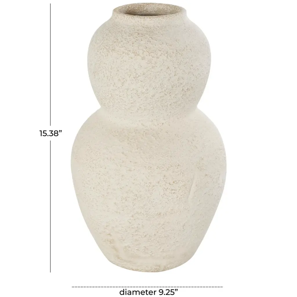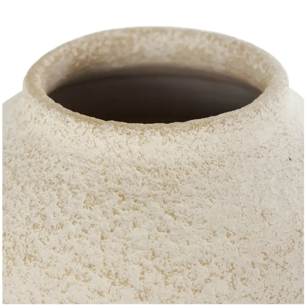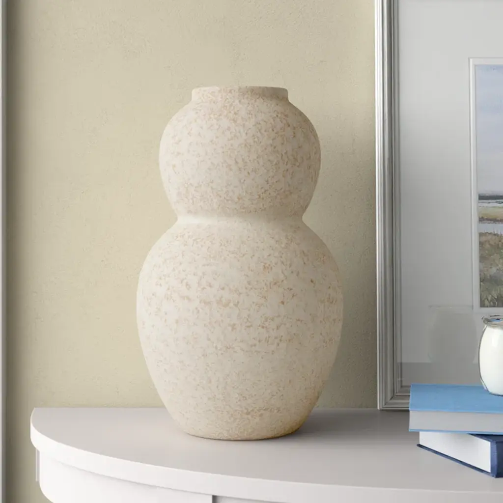 Ceramic Hourglass Textured Decorative Vase With Brown Distressing