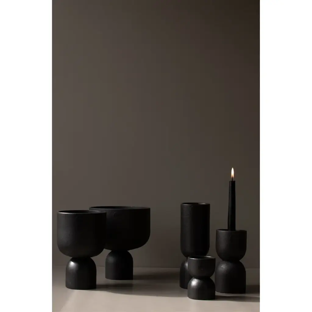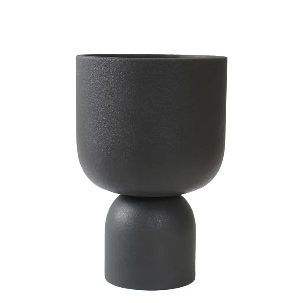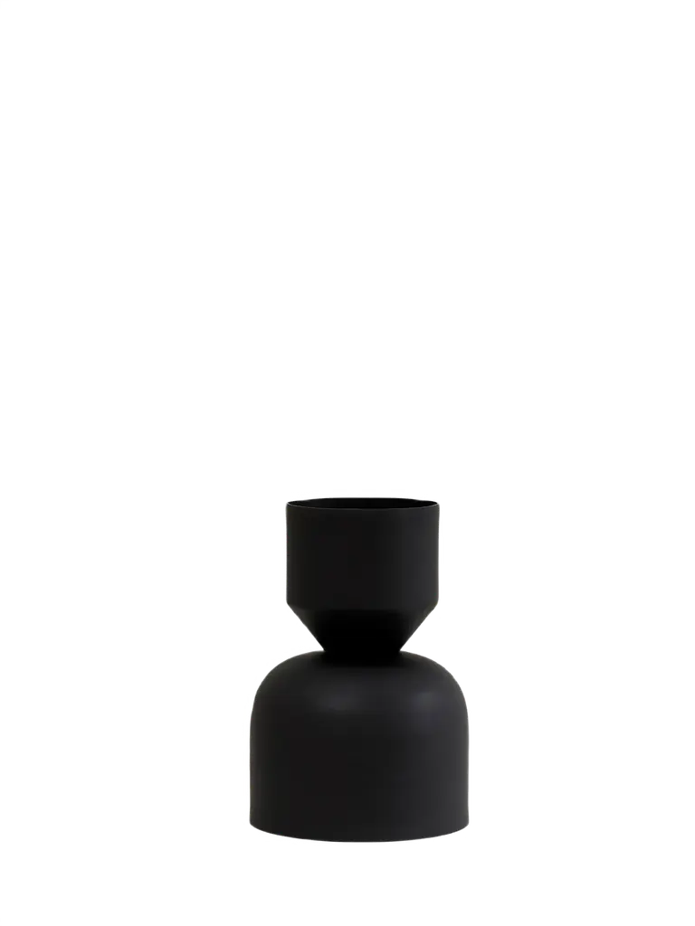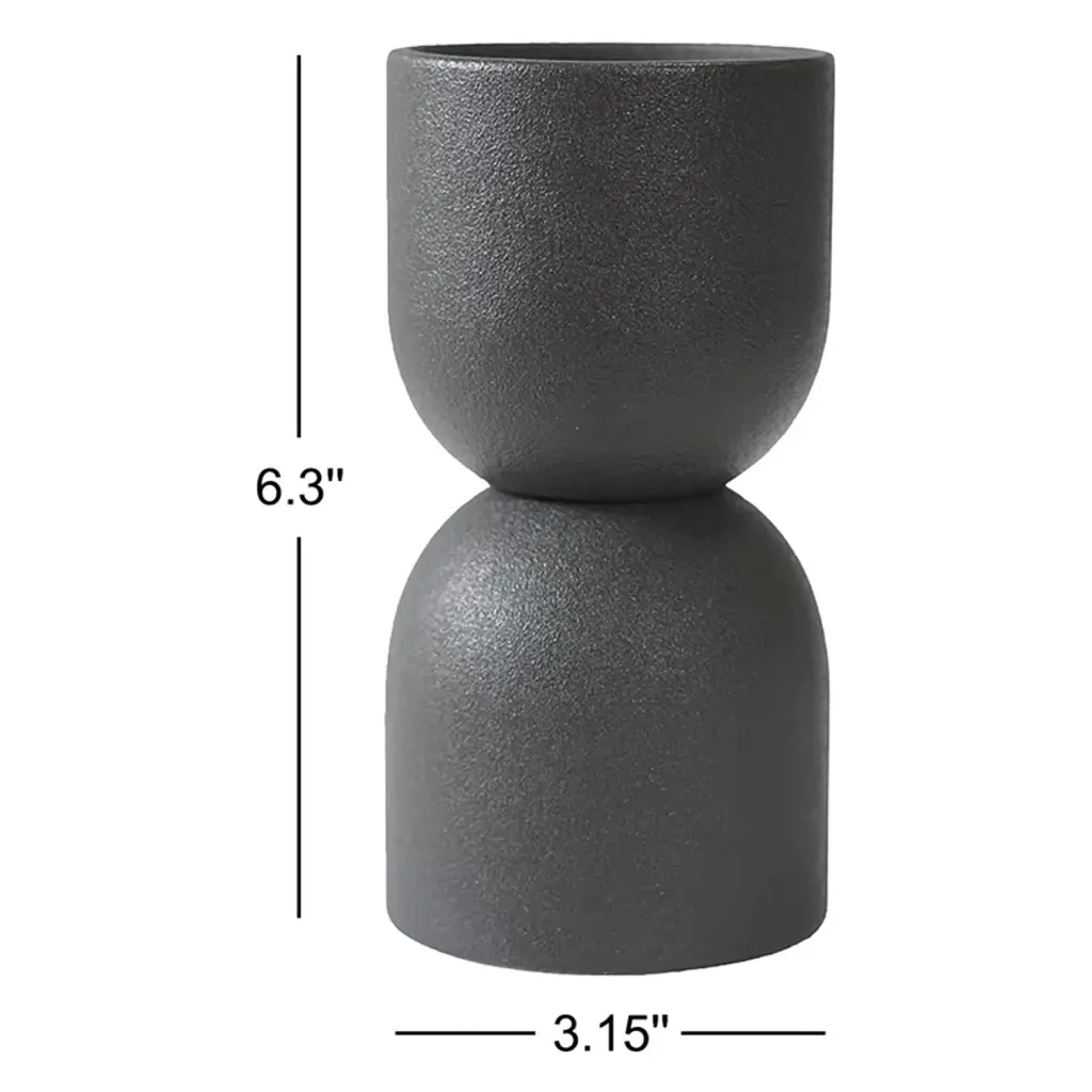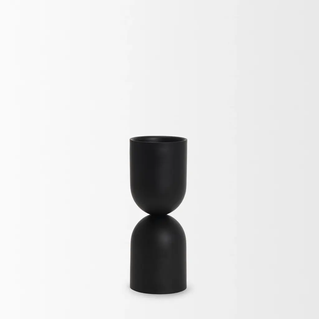 Minimalist gem. This table vase combines a sculptural design with a simplified hourglass-inspired shape, creating a modern and eye-catching accent or centerpiece. The minimalist design is enhanced by the sleek black color – which goes with nearly anything – with a textured glaze for extra visual and tactile depth. Its weighty feel provides a sense of luxe quality, as well as helps it stay securely in place on your mantle, bookcase, or sideboard. Please note: For indoor use only.