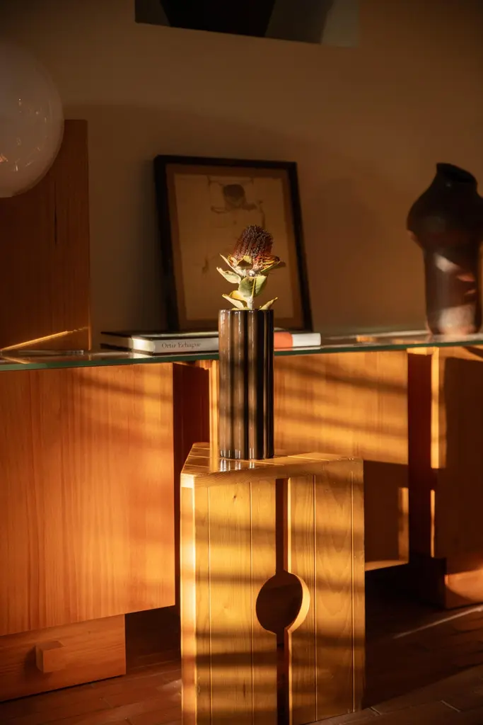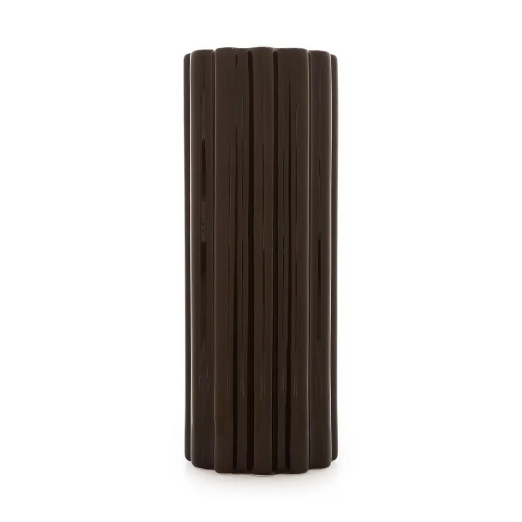 Simple yet striking, this high-gloss ceramic vase is available in a range of colors, including purple and green. The brown version offers a warm, earthy touch, adding a subtle pop of color to any interior. Its mid-size format makes it ideal for any space. Made in Portugal.STYLE : VCEV0101MATERIAL : CERAMICSDIMENSIONS : 3,75 INCH DIAMETER X 10 INCH HEIGHTCOLOR : CHOCOLATELIMITED STOCK