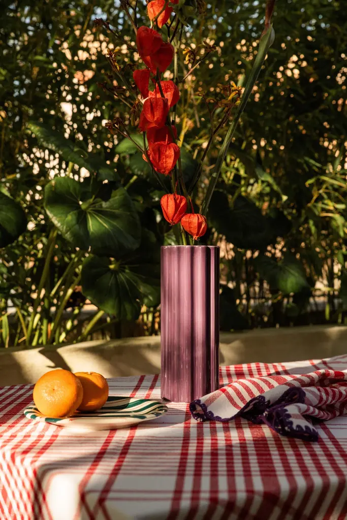 Simple yet striking, this high-gloss ceramic vase is available in a range of colors, including purple and green. The brown version offers a warm, earthy touch, adding a subtle pop of color to any interior. Its mid-size format makes it ideal for any space. Made in Portugal.STYLE : VCEV0101MATERIAL : CERAMICSDIMENSIONS : 3,75 INCH DIAMETER X 10 INCH HEIGHTCOLOR : PURPLELIMITED STOCK