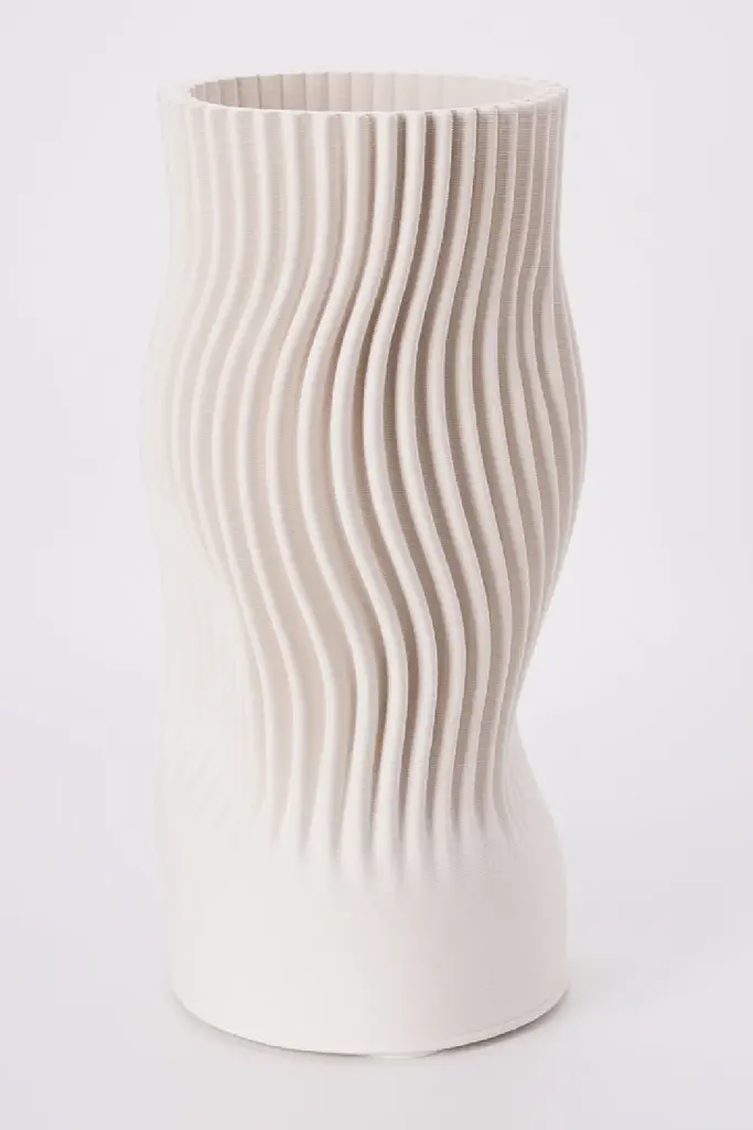 The sculptural design of the Imera vase aids in creating an enticing appearance. It’s an elegant, fascinating and functional piece that is both authentic and artistic. It is stunningly finished with 3D printed ceramic that has a lovely texture and offers a rich visual contrast that invites all sensations. Vradia vase is the black version of the Imera.Ceramic