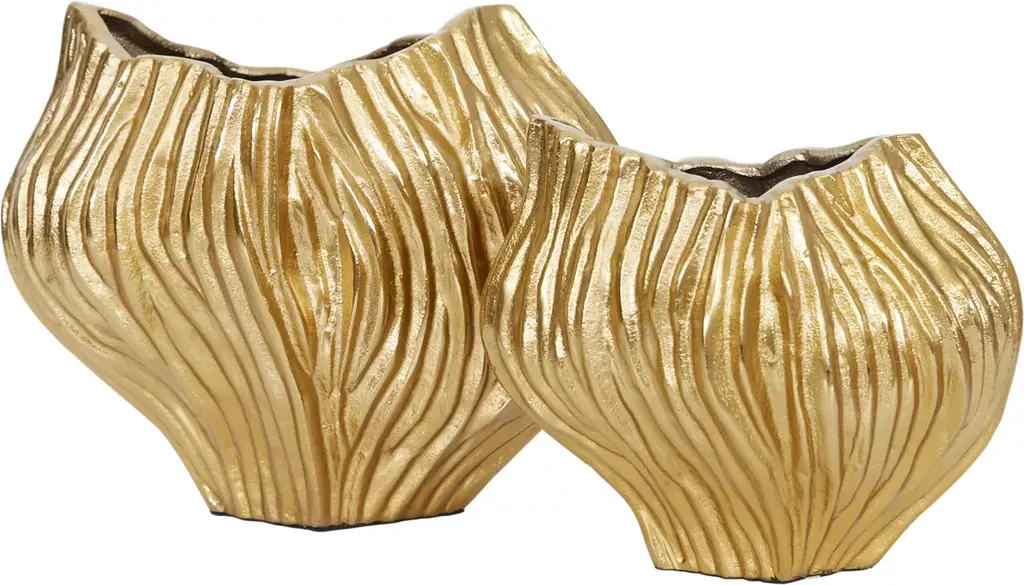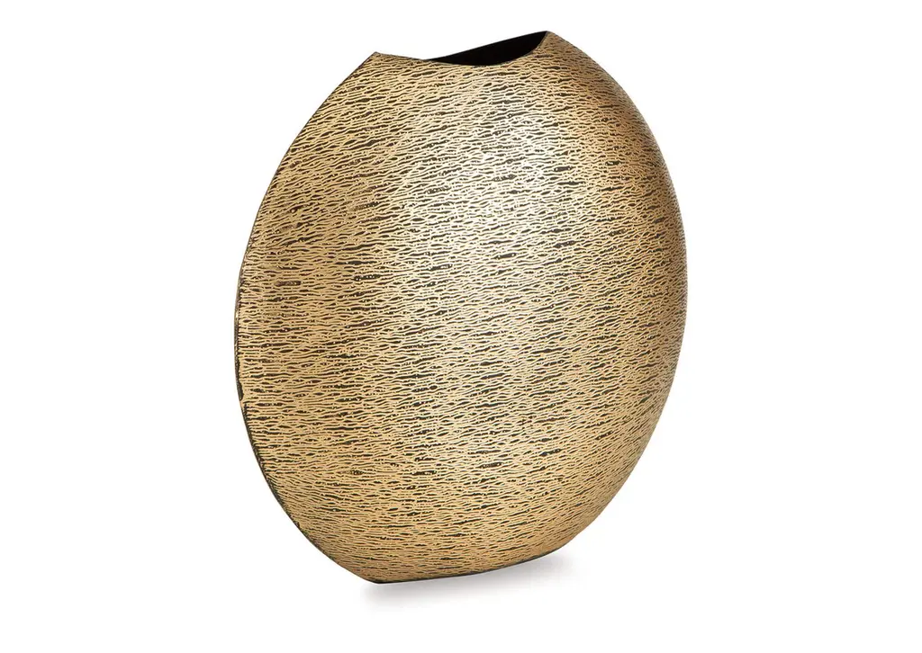 Luminous and uniquely shaped, our Cerise vase provides a vibrant accent to your console table or mantel and can be styled on its own or as a vessel for faux greenery or florals. Featuring a gold finish, this aluminum metal vase is available in an 8-inch or 10-inch-tall size. Please select your size before adding to cart.