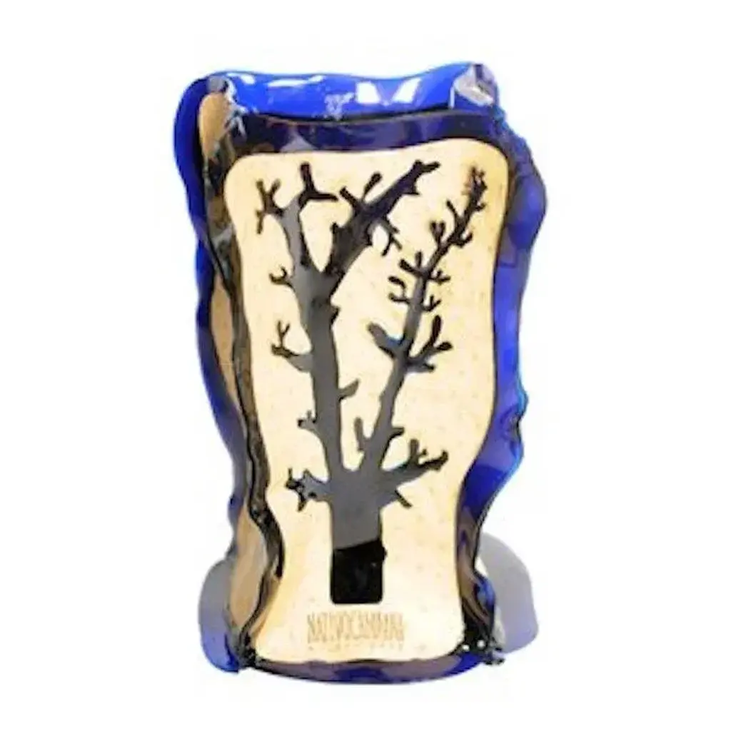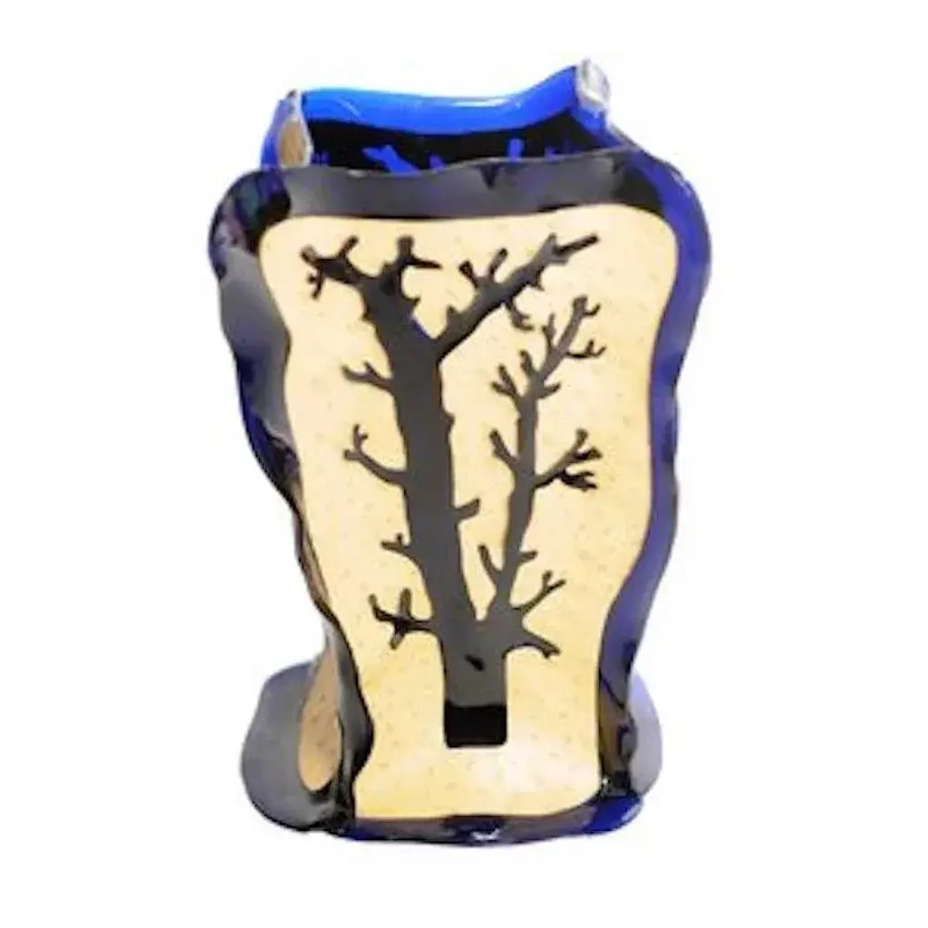 Cerrado Vase In Clear Blue And Beige Leather By Fernando & Humberto Campana For Corsi Design Factory