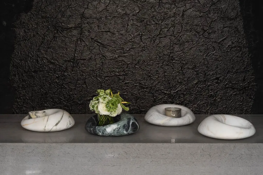 With its holow carved in stone, Cetus evokes both an imprint left by Mother Nature and a challenge to the laws of gravity.A poetic approach to the material for an organic and benevolent piece in which our candles and vaes will find pride of place .