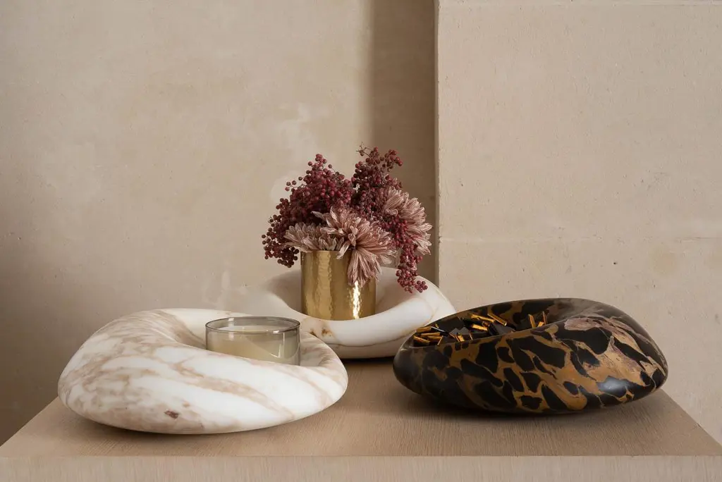 With its holow carved in stone, Cetus evokes both an imprint left by Mother Nature and a challenge to the laws of gravity.A poetic approach to the material for an organic and benevolent piece in which our candles and vaes will find pride of place.