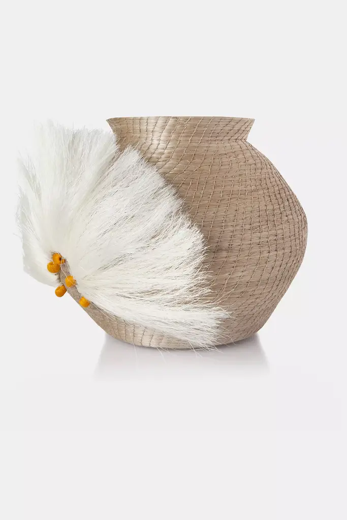 If youre looking for accessories that make a real statement, the Fanned Out Small Bulbous Vase will instantly add style and character to your space. Charlie Sprout pieces are made of hand spun Sisal grass that is indigenous to the region and dyed with eco friendly pigments...so not only are they incredibly chic, but also consciously crafted and help women artisans in eSwatini, Africa to create sustainable income. Each piece is a true work of art and takes one artisan between 30-80 hours to weave, making it the most labor intensive of all African baskets.Designed in Brooklyn, New York, Charlie Sprout is an eclectic and artistically inspired luxury home decor collection with unique pieces that add fun, color and sophistication to the home. Our mission is to create innovative, beautiful products while providing economic sustainability to artisan women around the world.* Handwoven Sisal grass* Dry spot clean, do not submerge or wash with water* Imported* This piece is custom made to order and will take approximately 8 -10 weeks to make#### *Dimensions** 12" (d) x 12" (h)All Charlie Sprout decorative accessories are handcrafted. There may be variation in appearance due to different artisan's interpretation of the design and is part of what makes each individual piece a uniquely beautiful work of art.