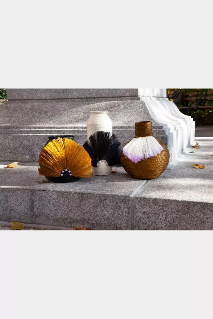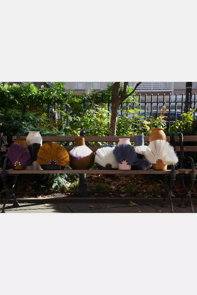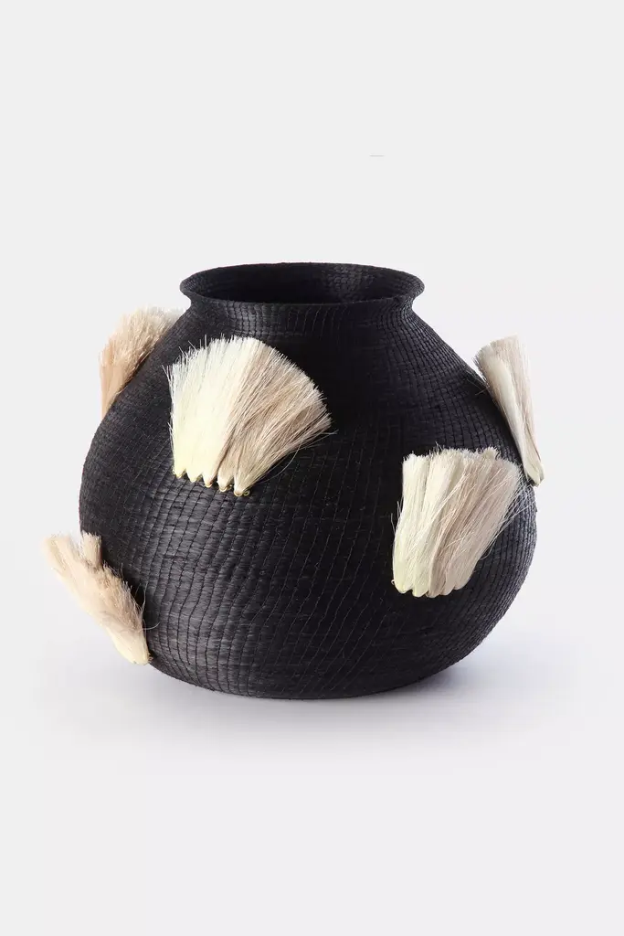 If youre looking for accessories that make a real statement, look no further! Our Fanned Out vase will instantly add style and character to your space. Our pieces are crafted of hand spun and hand woven Sisal grass indigenous to the region and dyed with eco friendly pigments...so not only are they incredibly chic, but also consciously made and help women artisans in eSwatini, Africa to create sustainable income.We work with more than 800 women across the country and each piece takes between 30-80 hours to complete.Designed and crafted in New York City, Charlie Sprout is an eclectic and artistically inspired luxury home decor collection with unique pieces that add fun, color and sophistication to the home. Our mission is to create innovative, beautiful products while providing economic sustainability to artisan women around the world.* Handwoven Sisal grass* Dry spot clean, do not submerge or wash with water* Imported* This piece is custom made to order and will take approximately 8 -10 weeks to make* fan & berry embellishments#### *Dimensions** 12 diameter, 12" height All Charlie Sprout decorative accessories are handcrafted. There may be variation in appearance due to different artisan's interpretation of the design and is part of what makes each individual piece a uniquely beautiful work of art.