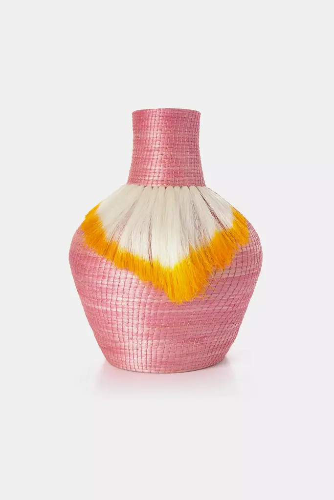 When color, pattern and texture collide, it creates magicand these vases are just that! Adding these pieces will add loads of personality, pops of color and a playful element to every space.This unique piece is created in a fair trade environment using locally harvested sisal, eco-friendly pigments and is crafted with gallery grade standards. Every piece is a true work of art, and takes one artisan over 30 hours to weave, making it the most labor intensive of all African baskets.Designed and crafted in Brooklyn, New York, Charlie Sprout is an eclectic and artistically inspired luxury home decor collection with unique pieces that add fun, color and sophistication to the home. Our mission is to create innovative, beautiful products while providing economic sustainability to artisan women around the world.* Handwoven Sisal grass* Dry spot clean, do not submerge or wash with water* Imported* This piece is custom made to order and will take approximately 8 -10 weeks to make#### *Dimensions** 5 (d) x 17 (h) All Charlie Sprout decorative accessories are handcrafted. There may be variation in appearance due to different artisan's interpretation of the design and is part of what makes each individual piece a uniquely beautiful work of art.
