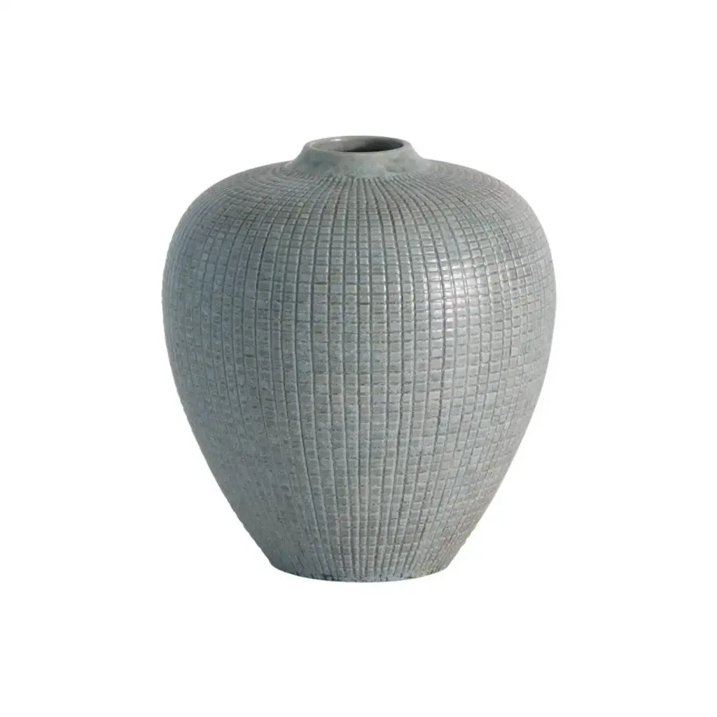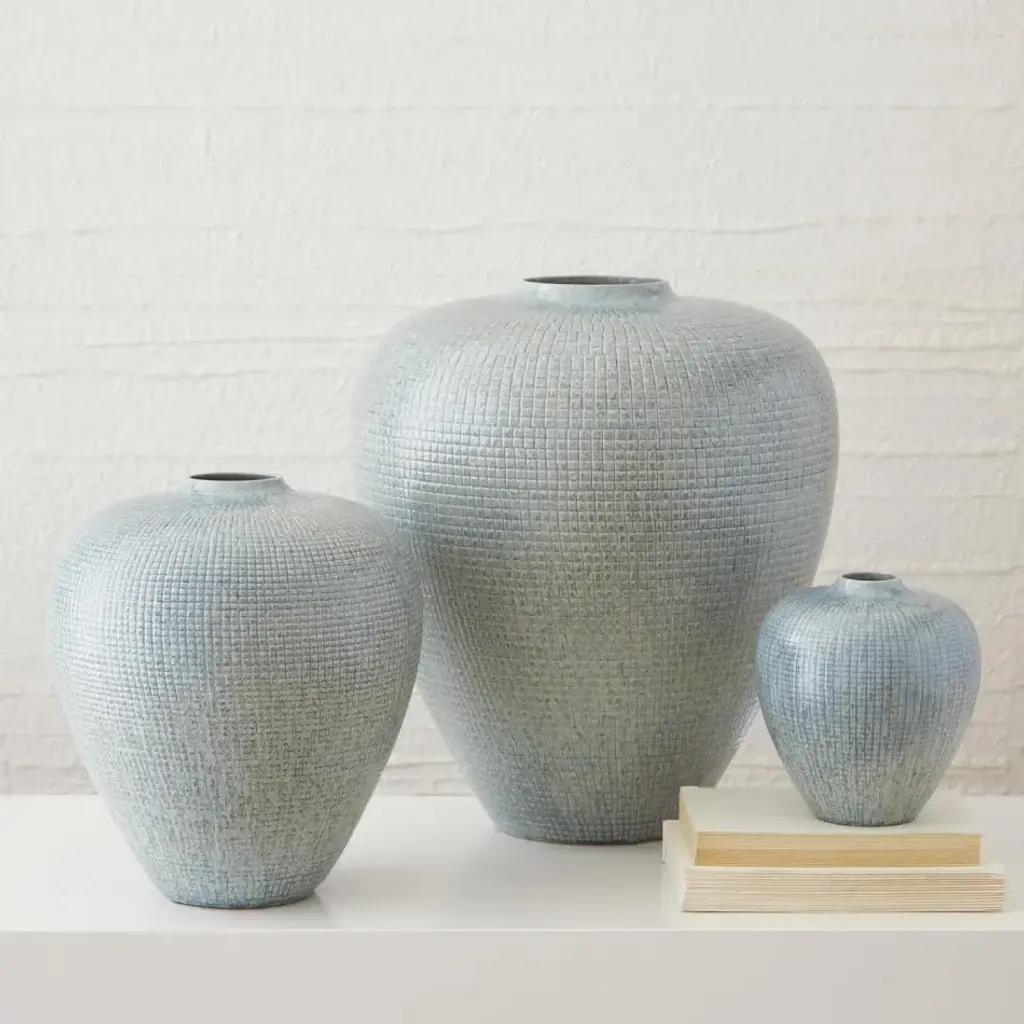 A rich, highly reactive glaze combusts beautifully upon the striated rectilinear pattern of the Check Collection. The Portuguese artisans who create this collection for Studio A Home have been devising complex reactive glazes for decades. Their extraordinary skill is rare and unequivocal. Available in Silver Blue and Umber. From a fashion forward perspective, Global Views offers accessories, furniture, statement lighting, and an assortment of rugs and mirrors to add beauty and joy to your home.