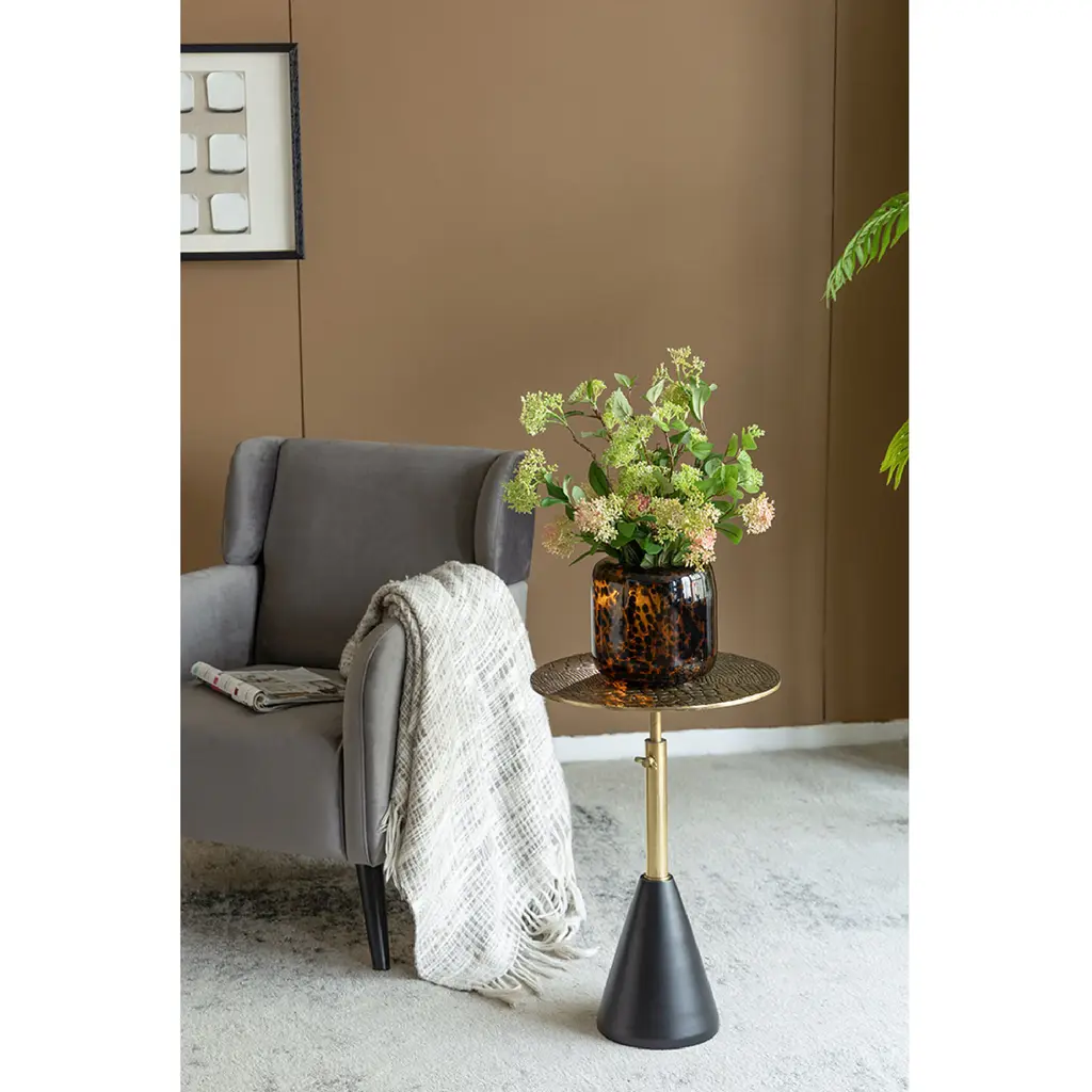 Drawing inspiration from the wild, the Chee glass vase offers a handcrafted pattern, much resembling a cheetah in the wild. The amber and black coloring of the vase depict the cheetahs coloring that sneaks into your design, while accenting your terrain styled space. Create a roar when you make the handcrafted Chee glass vase to your designs.