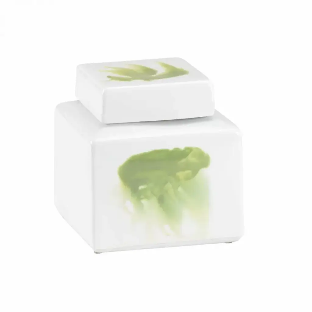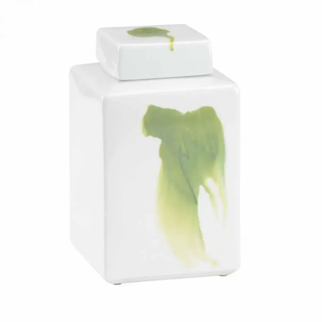 Green And White Glazed Porcelain. Hand Painted.