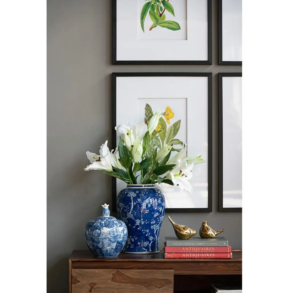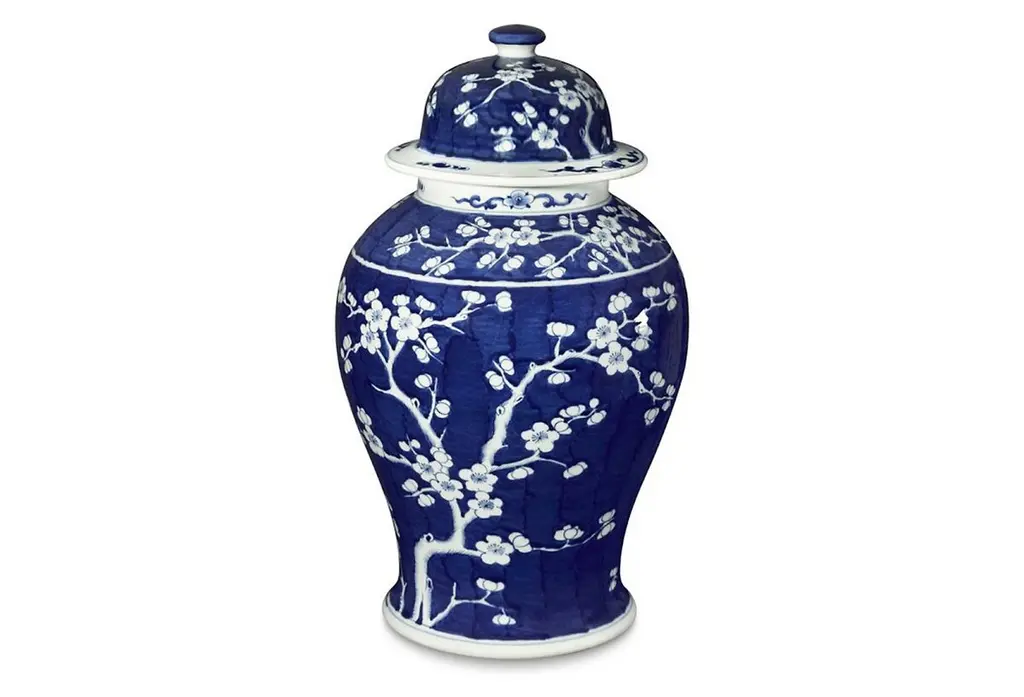 With its delicate cherry blossom pattern, vibrant blue and white colors, and sleek silhouette, the 18" Cherry Blossom Ginger Jar makes an exquisite addition. Feature in any room with a regal, traditional style for a burst of color while the delicate pattern softens its bold style. The Cherry Blossom Ginger Jar looks stunning alone or filled with opulent flowers or decorative branches.
