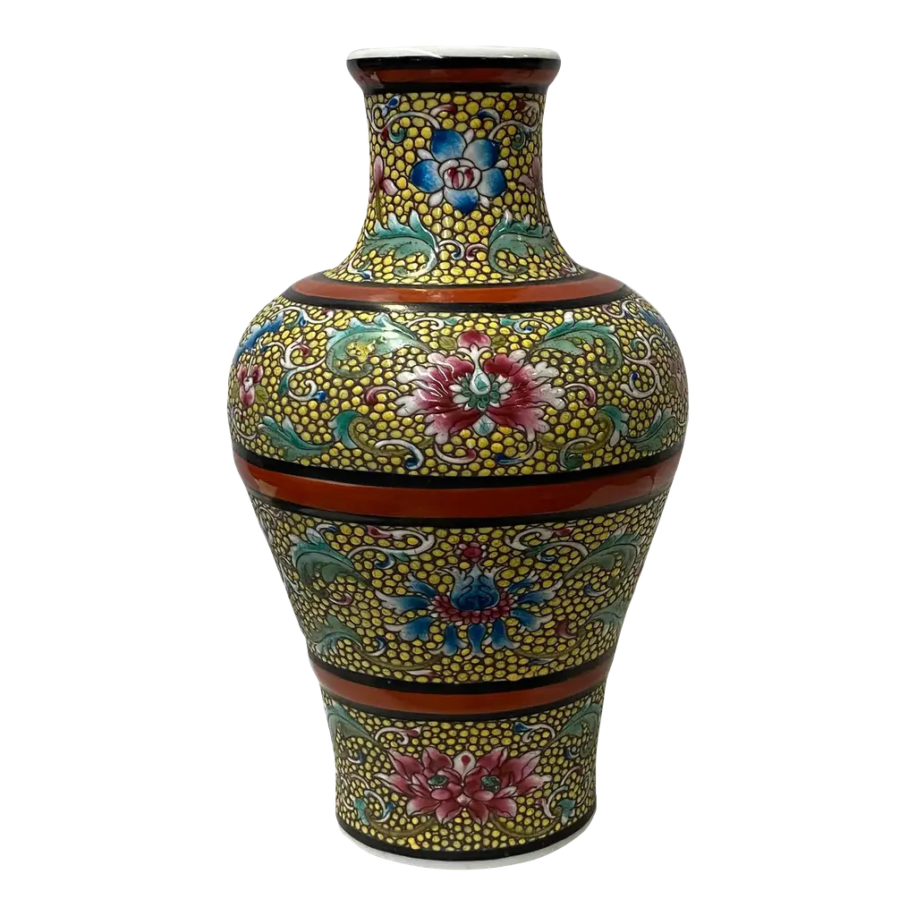 Chinese Late Qing Pair Cloisonne Floral Pattern Vases