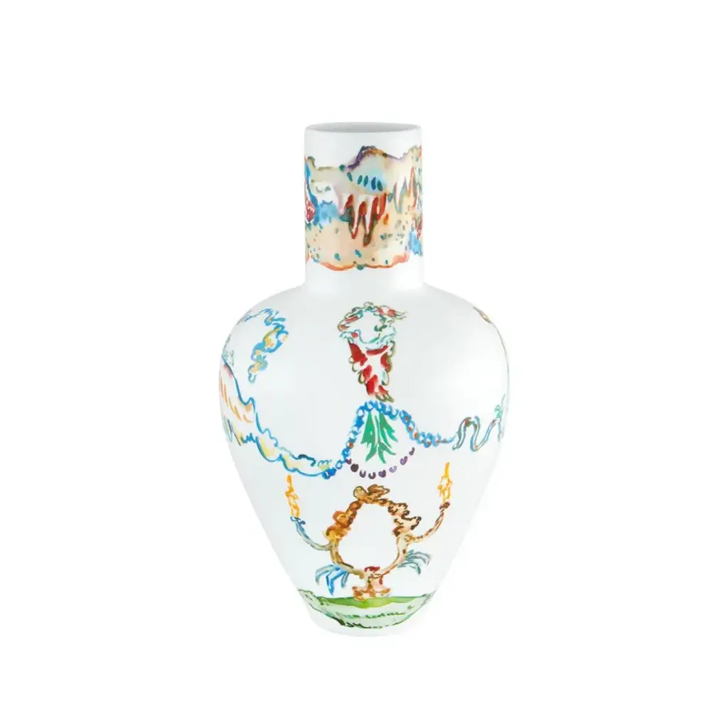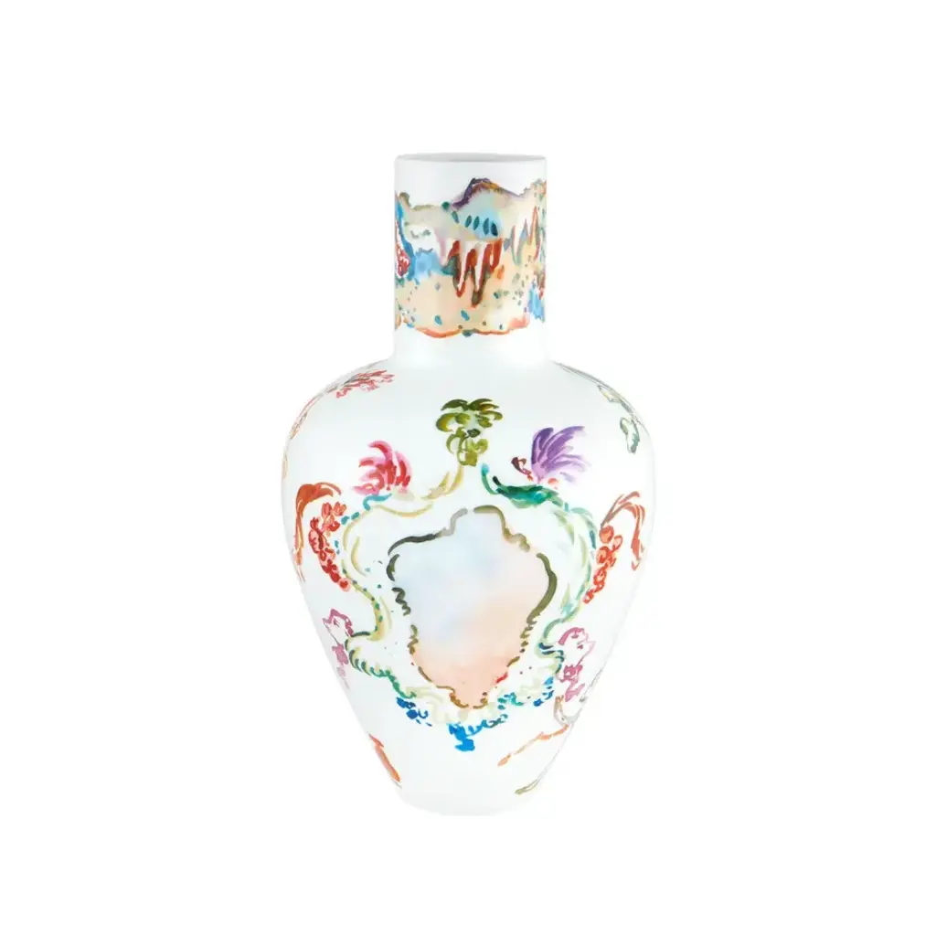 Set 2 Vases Chinoiseries. In the vases Du Fu and Li Bai of the Chinoiseries collection, Pedro Proença pays a double tribute to the almost calligraphic side of Chinese porcelain and its exuberant decoration, with its dancing and colorful style. Vista Alegre is a world-renowned tabletop company and manufacturer of the largest collection of fine tableware, home decor, giftware, and hotelware in porcelain, crystal and glass in Europe. Known for its strong connection to design and culture and its tradition of working with world-renowned artists such as Christian Lacroix, Oscar de la Renta, and Karim Rashid, Vista Alegre offers a quality of excellence that appeals to a broad range of consumer tastes.