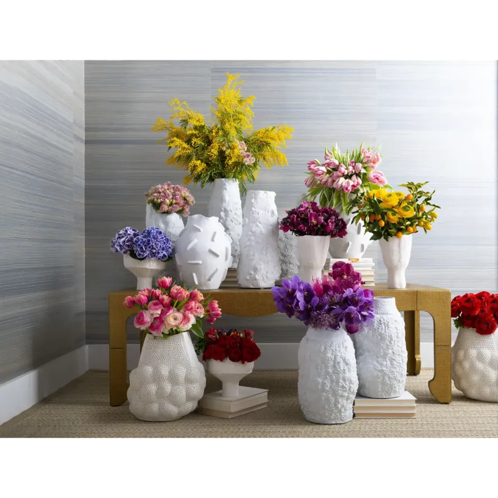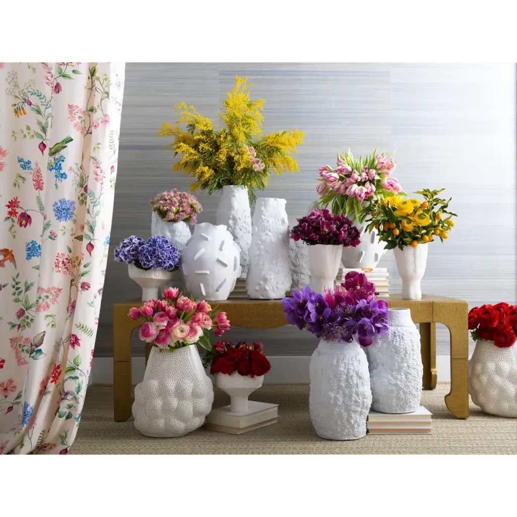 The Ciara vase is one of several new vases that takes it's inspiration from forms encountered in the natural world. Borrowing from coral reefs, to forests, to natural rock outcroppings, our artisans have created vases in matte glazed porcelain that celebrate the beauty and the asymmetry forms encountered in both land and sea. Stunning in their originality, these pieces serve either decorative objects, for example gracing center table or a dining table, or as vases holding floral arrangements.