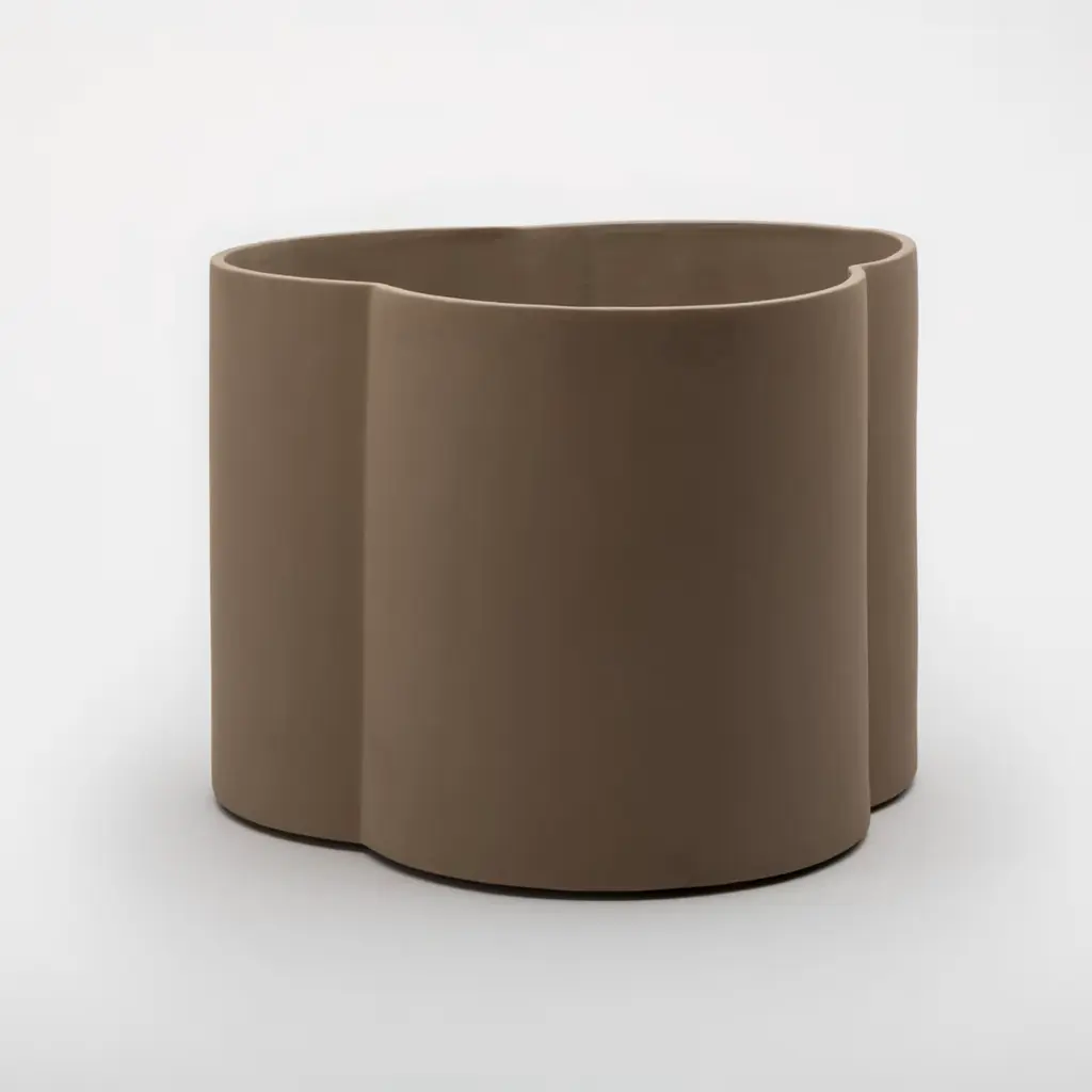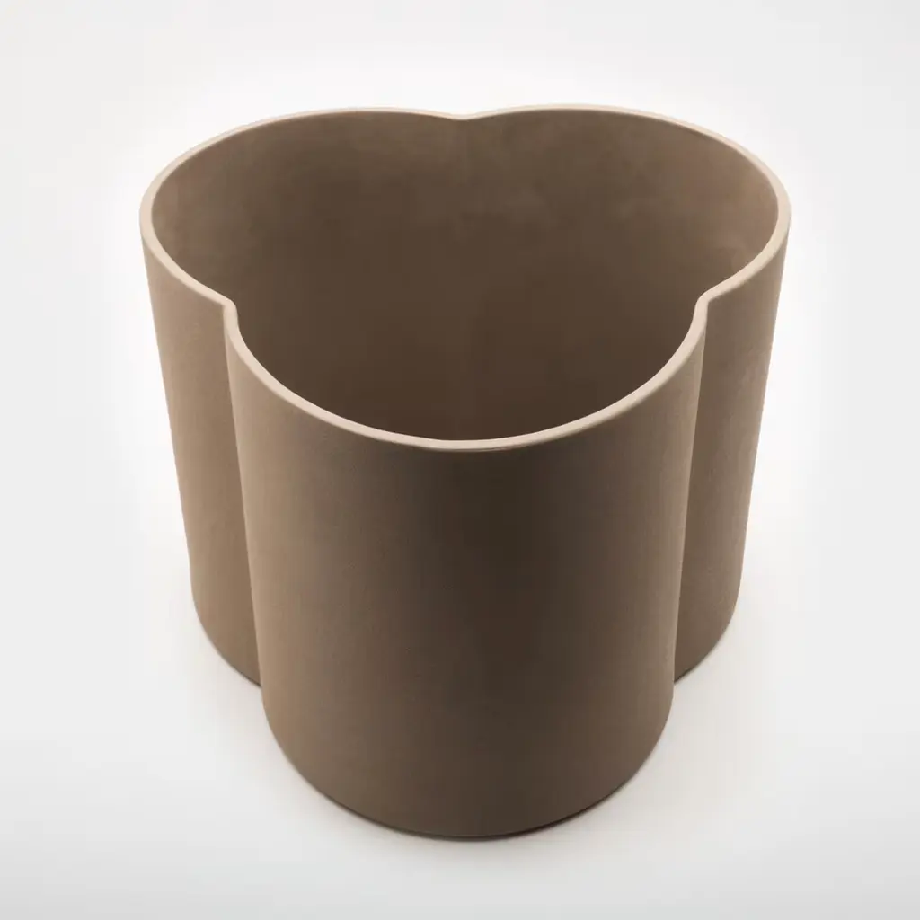 This refined sand-hued vase in stoneware designed by Enzo Mari is a tangible synthesis between natural elements rendered through geometric volumes. Connected to the conceptual inspiration behind the Bambù and Trifoglio series, this design is distinguished by an elongated silhouette whose sinuous profile develops from the perimeter outlined by the intersection of three circles. Available in two other variants (7.8 and 16 cm in height).