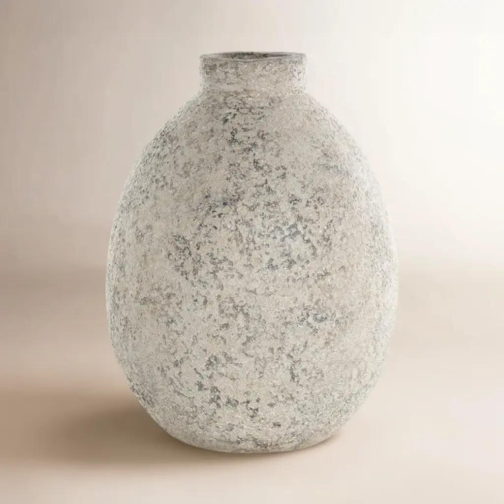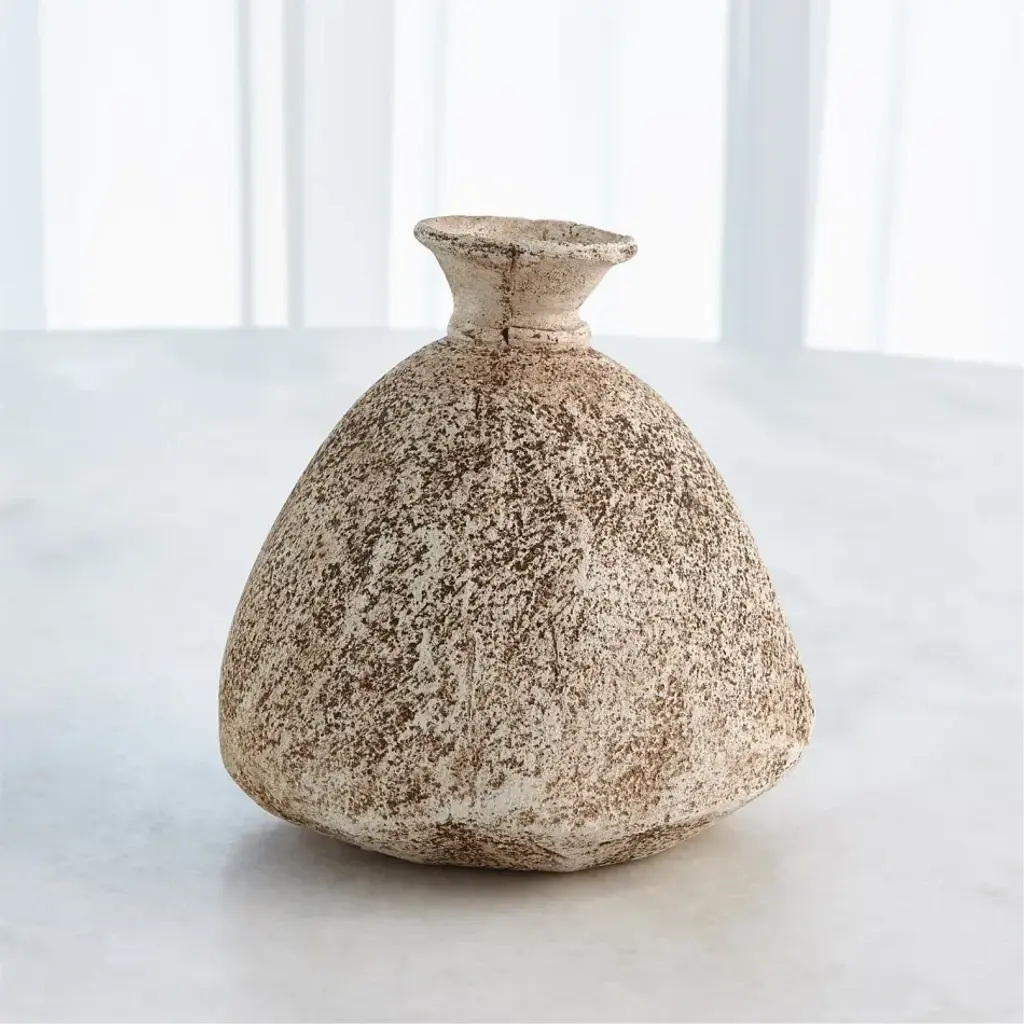 The Cinder Wide Bottom Vase is created with the traditional Japanese raku process. Each piece is unique by nature as it is hand-dipped in sand before being sealed by a glaze in the kiln by Portuguese artisans. From a fashion forward perspective, Global Views offers accessories, furniture, statement lighting, and an assortment of rugs and mirrors to add beauty and joy to your home.