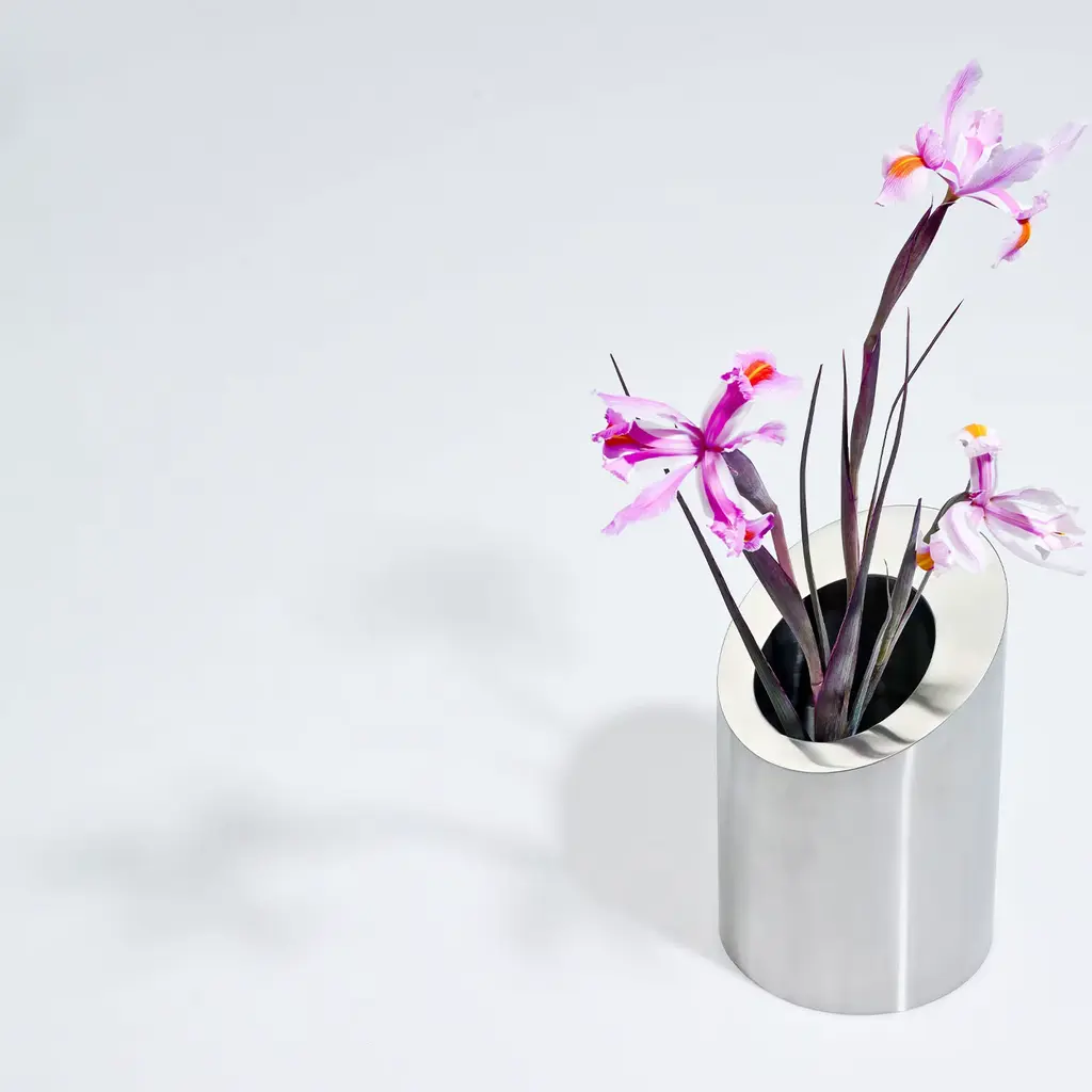 AISI 304 Circolo is a stainless steel vase with a polished finish designed by Robert Evans. The harmony of contrasting forms highlights the concept of material elegance. This collection of vases offers modern elegance, handcrafted for both indoor and outdoor spaces. A playful design series that enriches any environment through the contrast of noble materials and formal configurations.