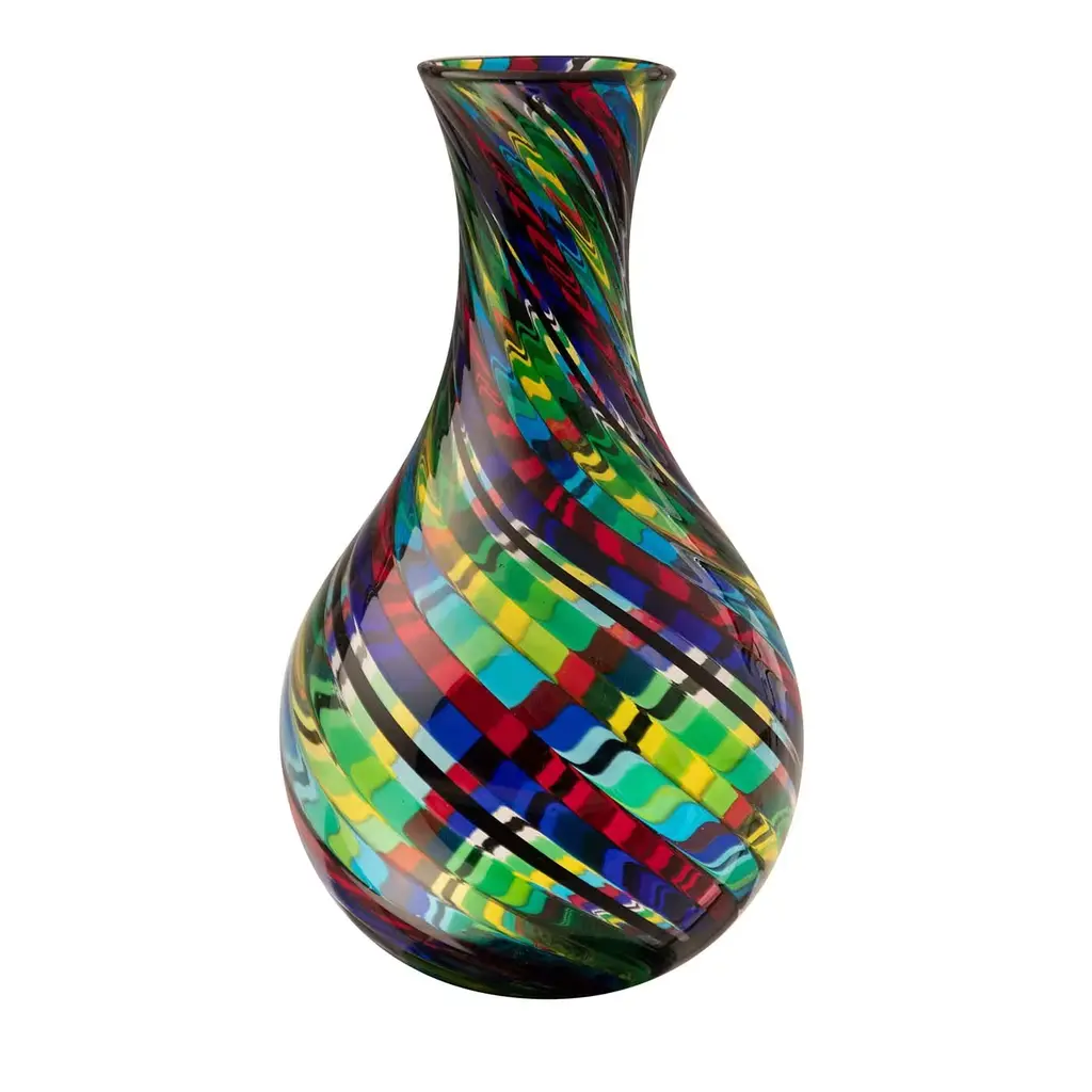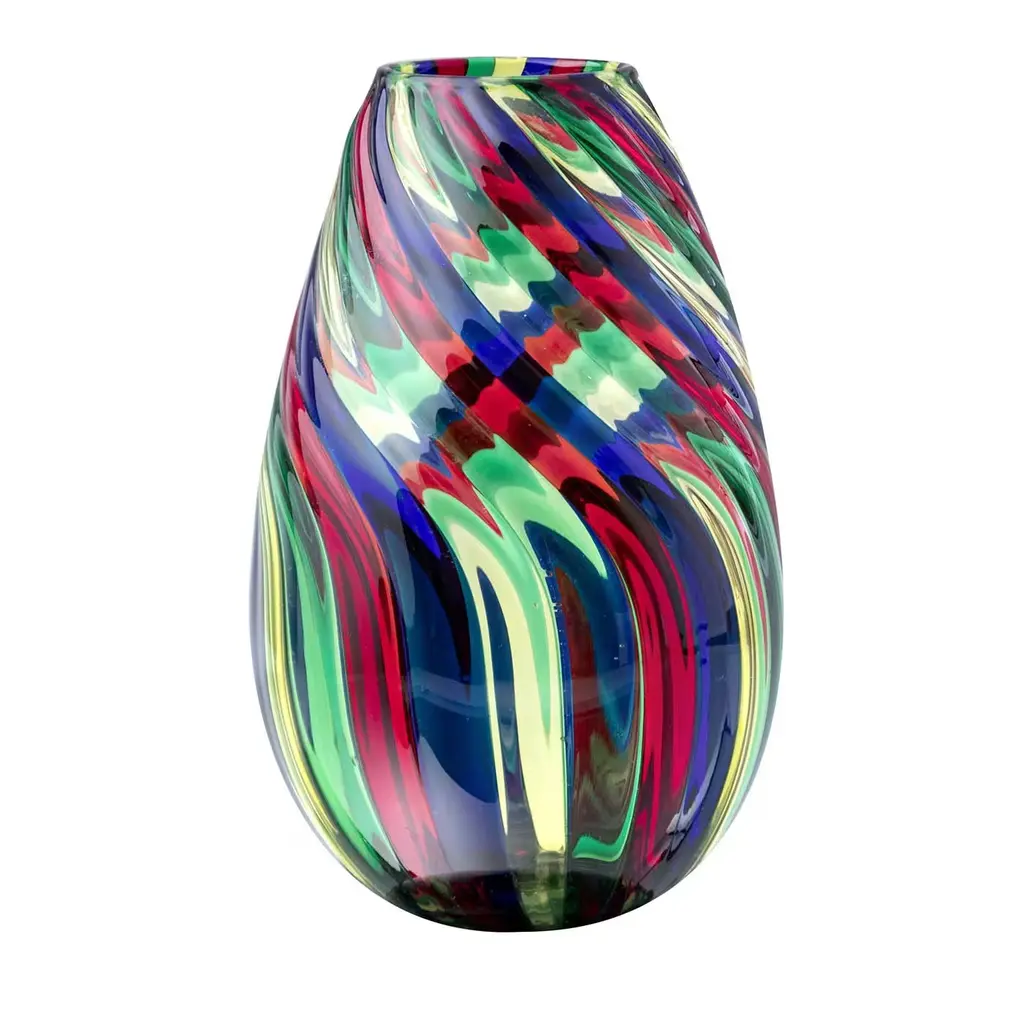 The Classic Bloom Vase with its strong and decisive colors is entirely handmade in Murano glass by Angelo Ballarin, by combining opaque red glass tiles and transparent inserts of various colors. The stunning contrast obtained makes the vase perfect for adding color and creative flair to any contemporary setting in the home.