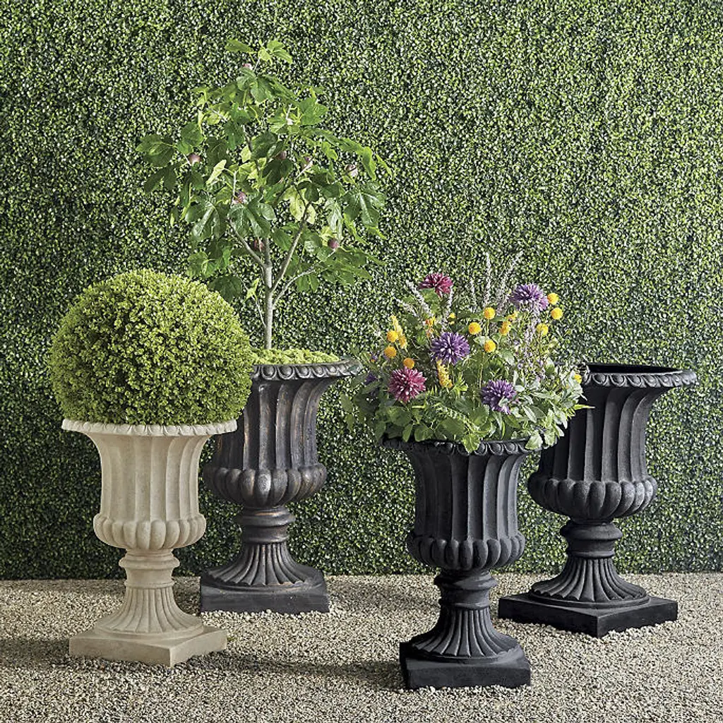 If you are looking for the quintessential, classic planter to add to your garden, terrace, or entryway, look no further than our Tuscany Urns. These all-weather urns have the antique flair of a 19th-century cast-iron urn, but with a fraction of the weight—and the cost. Hand-cast stone composite Durable, hand-rubbed finish Display Tuscany outside or indoors; use a liner if placing indoors Each includes a drain hole and plug At Frontgate, our primary focus is quality. We guarantee that every product we sell will stand up to the supreme test – our customers' satisfaction. To learn more about our policies, visit our Shipping & Processing, Returns & Exchanges and Warranty & Price Guarantee pages.