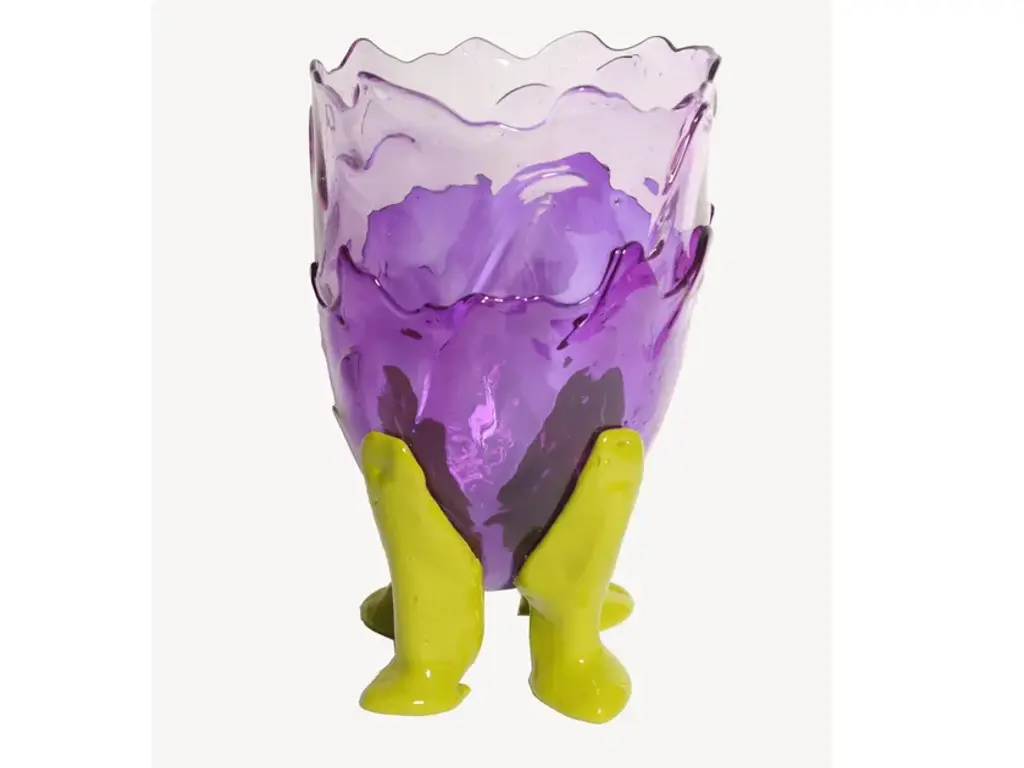Vase in soft resin designed by Gaetano Pesce in 1995 for Fish Design collection. COLOURS: Clear Lilac, Clear Purple And Matt Dust Green*These pieces will be manufactured after receiving the order, keeping the model’s references, its colours and dimensions. All the pieces are hand-made therefore unique and they won’t be exactly the same of the images provided. Slight variations in the hues and colours’ distribution are likely to happen. Made in Italy.