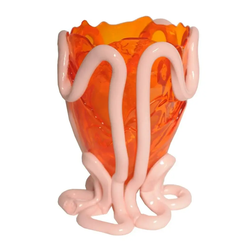 Clear Orange And Pastel Pink Indian Summer Vase By Gaetano Pesce For Fish Design