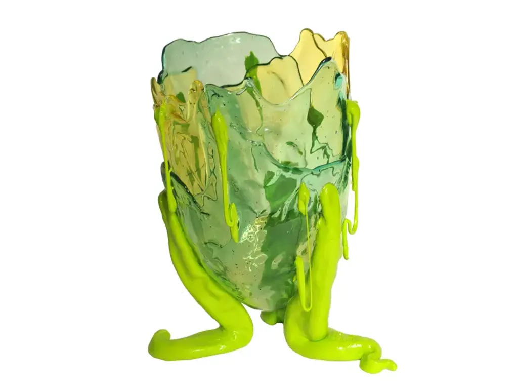 Clear Special Extracolour is a vase in soft resin designed by Gaetano Pesce in 1995 for Fish Design collection. COLOURS: Clear Aqua, Clear Yellow And Matt Lime*These pieces will be manufactured after receiving the order, keeping the model’s references, its colours and dimensions. All the pieces are hand-made therefore unique and they won’t be exactly the same of the images provided. Slight variations in the hues and colours’ distribution are likely to happen. Made in Italy.