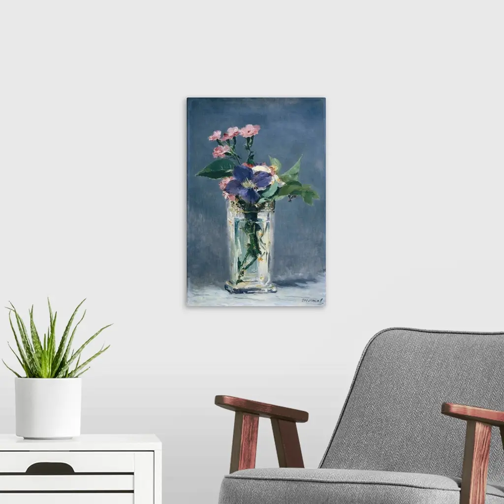 MANET, edouard (1832-1883). Clematis in a Crystal Vase. 1882. Impressionism. Oil on canvas. FRANCE. Paris. Musee d'Orsay (Orsay Museum). -