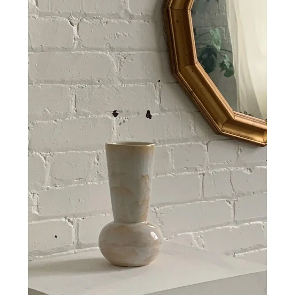 Cloud Vase by Solem CeramicsDimensions: D 13 x W 13 x H 33 cm.Materials: White stoneware, glazeThis vase is water safe. Please contact us.Solem’s work pulls from memories of the architecture and community within SWANA and Southeast Asia thorough exploring familiar shapes, colours and textures from these regions in which she found comfort. We have the ability to revisit timelines– to reutrn to a place that may feel lost, or one that has never existed– through finding peace in yearning. To find the peace in yearning is to bridge the metaphysical gap between the physical self and the essence of Home, and therefore, exist in multiple places at once.Clay is a multidimensional mirror. It is affectionate, communicative, intuitive and confrontational.