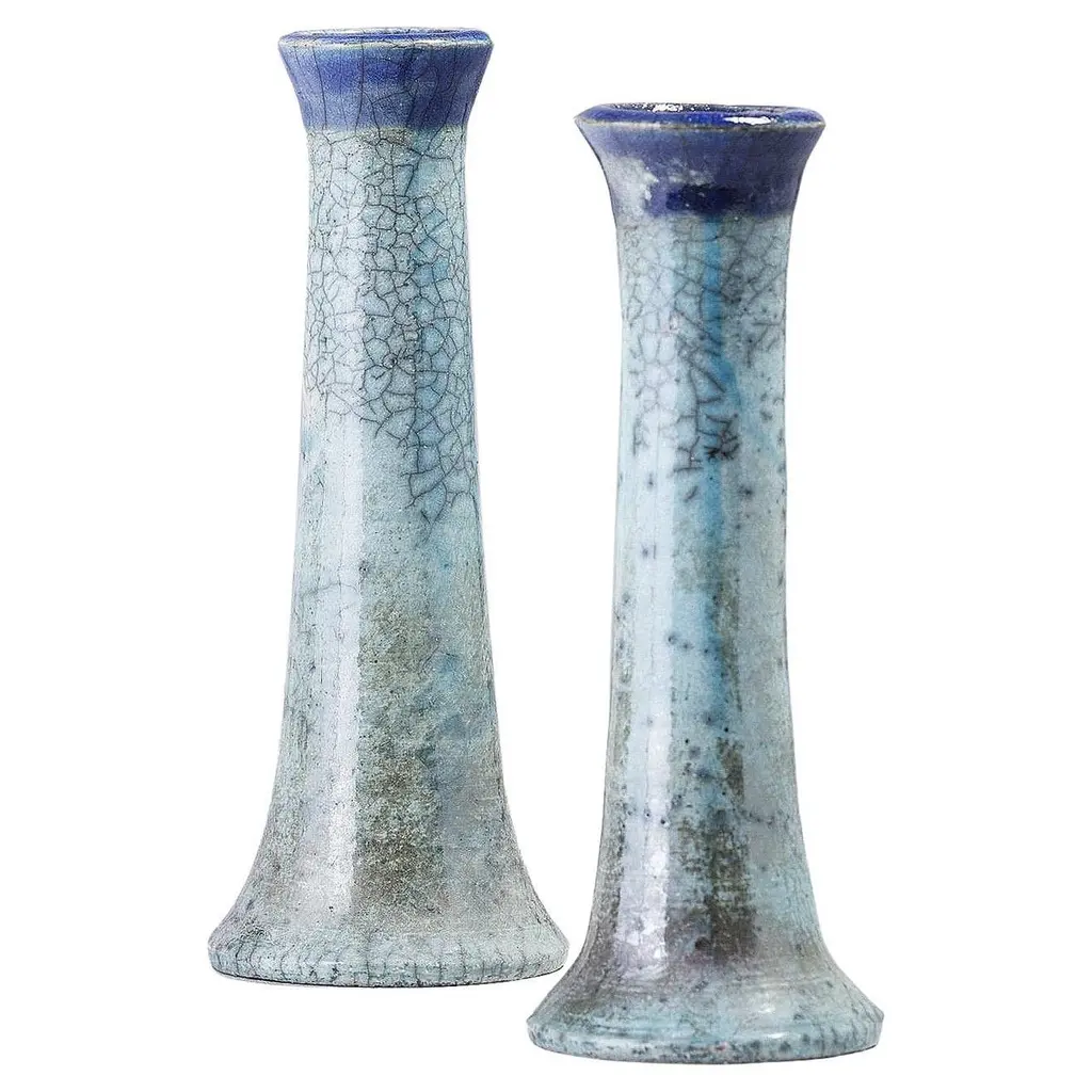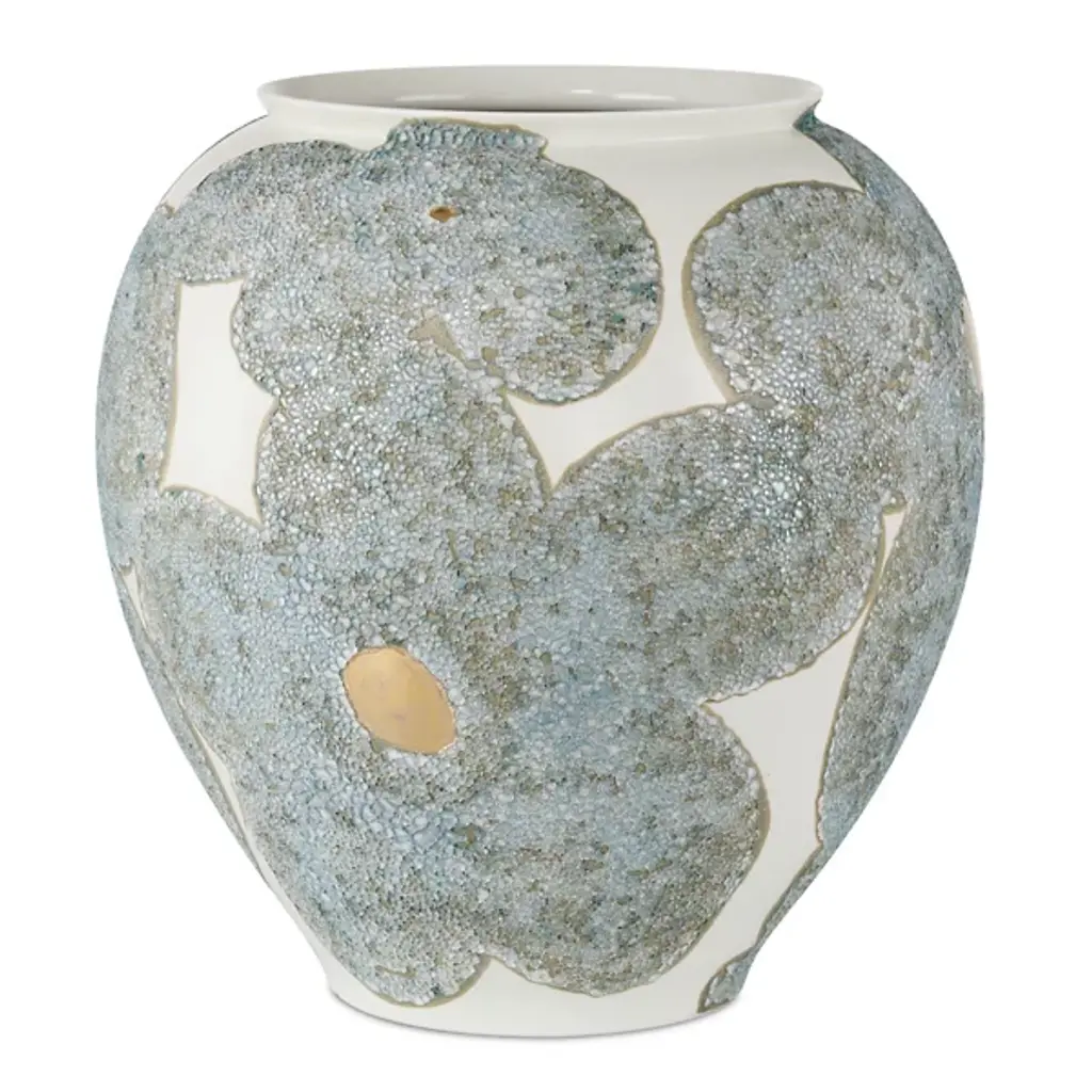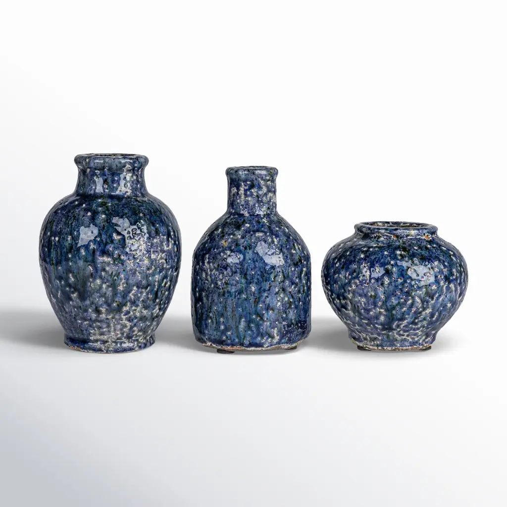 This serene set of ceramic vases is distinguished by its unstructured shapes and a relaxed take on traditional blue and white themes. The patterns on the exterior are created using blue reactive glazes, while the interiors remain raw and unadorned. Artisan crafted and finished, each piece features unique patterns, ensuring that no two are identical. Perfect for florals, they can be filled with your favorite fresh or preserved elements!