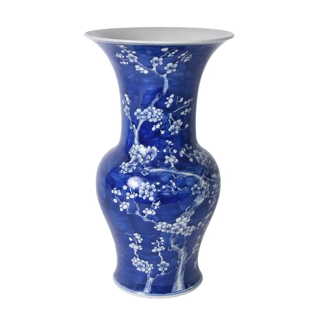 The Coalescent Vase is a gorgeous decorative vessel that infuses an interior space with delightful motifs from nature. This glazed porcelain vase features a pristine white tone, as well as airy florals in coalescent shades of light and dark blue.