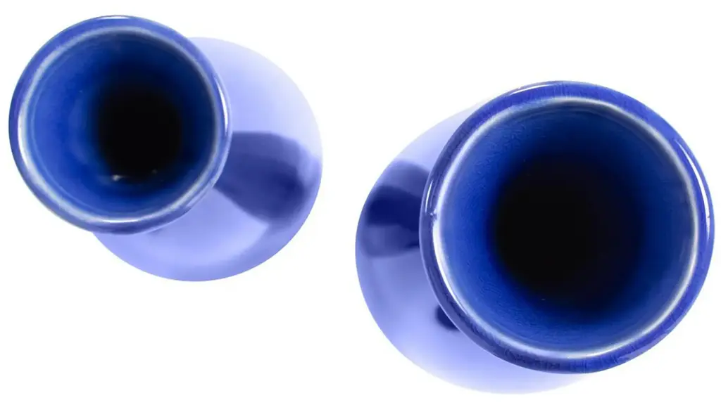 The Cobalt Blue Glaze Vase - Set of 2 is fashioned from ceramic and finished in a vivid cobalt blue glaze. The set includes a large and small sized vase that you can use together or each on their own anywhere in your home. The vase has padded feet to protect your surfaces. Console tables, book shelves, pedestals or any other place that a punch of color is needed, are the perfect places for this vase set.