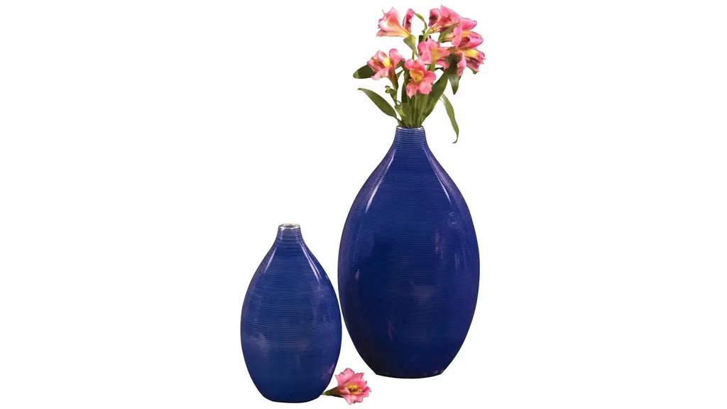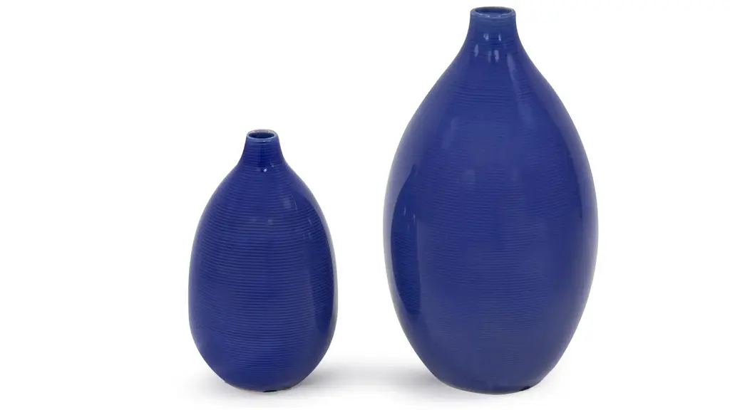 The Cobalt Vase - Set of 2 is fashioned from ceramic and finished in a vivid cobalt blue glaze. The set includes a large and small sized vase that you can use together or each on their own anywhere in your home. The vase has padded feet to protect your surfaces. Console tables, book shelves, pedestals or any other place that a punch of color is needed, are the perfect places for this vase set.