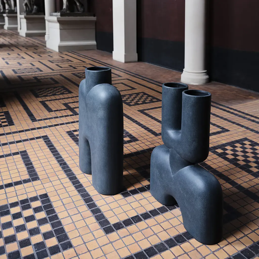 A tribute to the Cobra Arts Movement of the 1960s, the collection is the epitome of quirky vases that will add joy to any interior setting. Think whimsical, soft and organic shapes unmistakably reminiscent of human silhouettes and curves. True to the Cobra artists way of working, the series takes its starting point in naive hand sketches leading to bodily silhouettes. As it is a hand glazed natural product, the colours may vary slightly and while it is not 100% waterproof, a bag for fresh flowers is included. Designed by Kristian Sofus Hansen & Tommy Hyldahl.