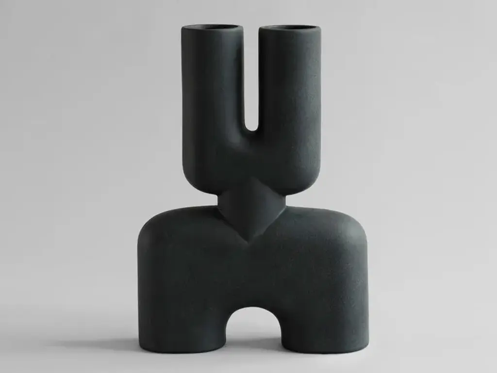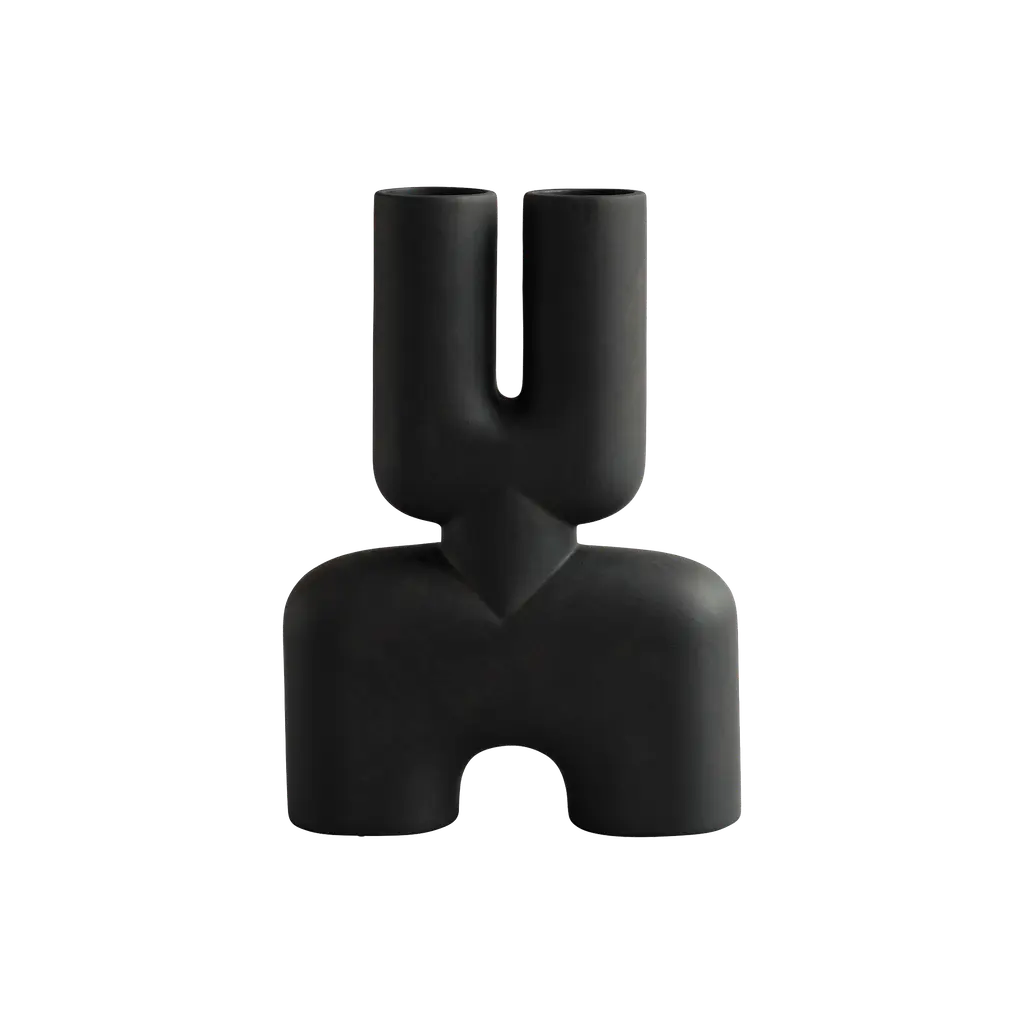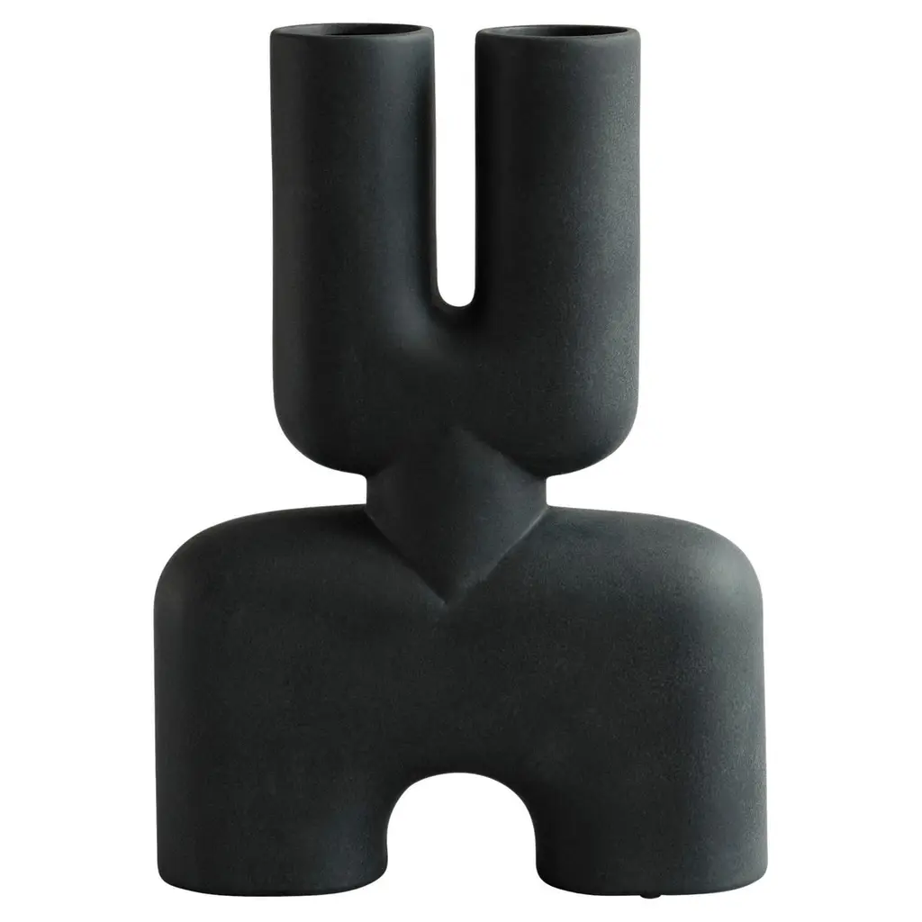 Inspired by the Cobra Arts Movement of the 1960s, the Cobra Double Vase from 101 Copenhagen features quirky vases with whimsical, organic shapes that evoke human silhouettes and curves. These playful designs, based on naive hand sketches, bring joy to any interior. Hand-glazed with slight color variations, each vase is unique. While not fully waterproof, a bag for fresh flowers is included.