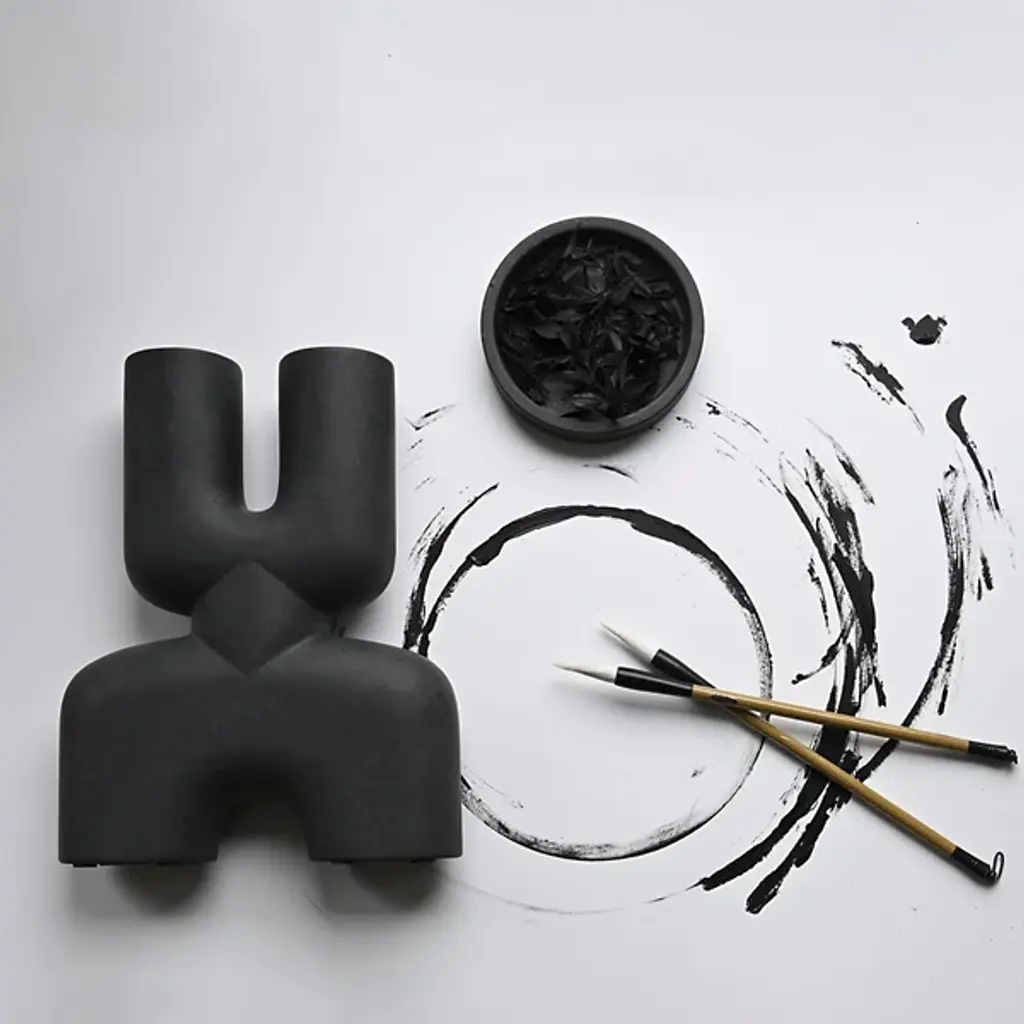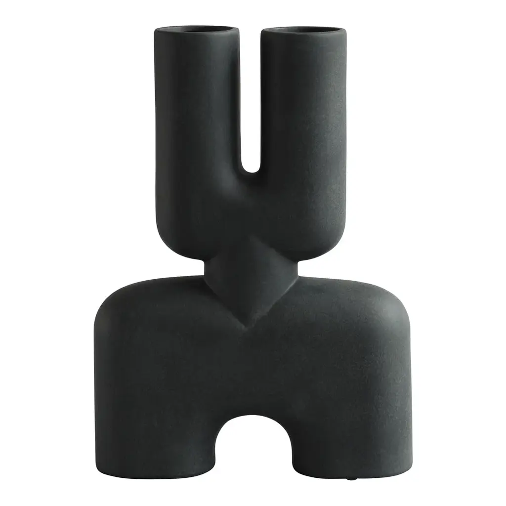 Inspired by the Cobra Arts Movement of the 1960s, the Cobra Double Vase from 101 Copenhagen features quirky vases with whimsical, organic shapes that evoke human silhouettes and curves. These playful designs, based on naive hand sketches, bring joy to any interior. Hand-glazed with slight color variations, each vase is unique. While not fully waterproof, a bag for fresh flowers is included.