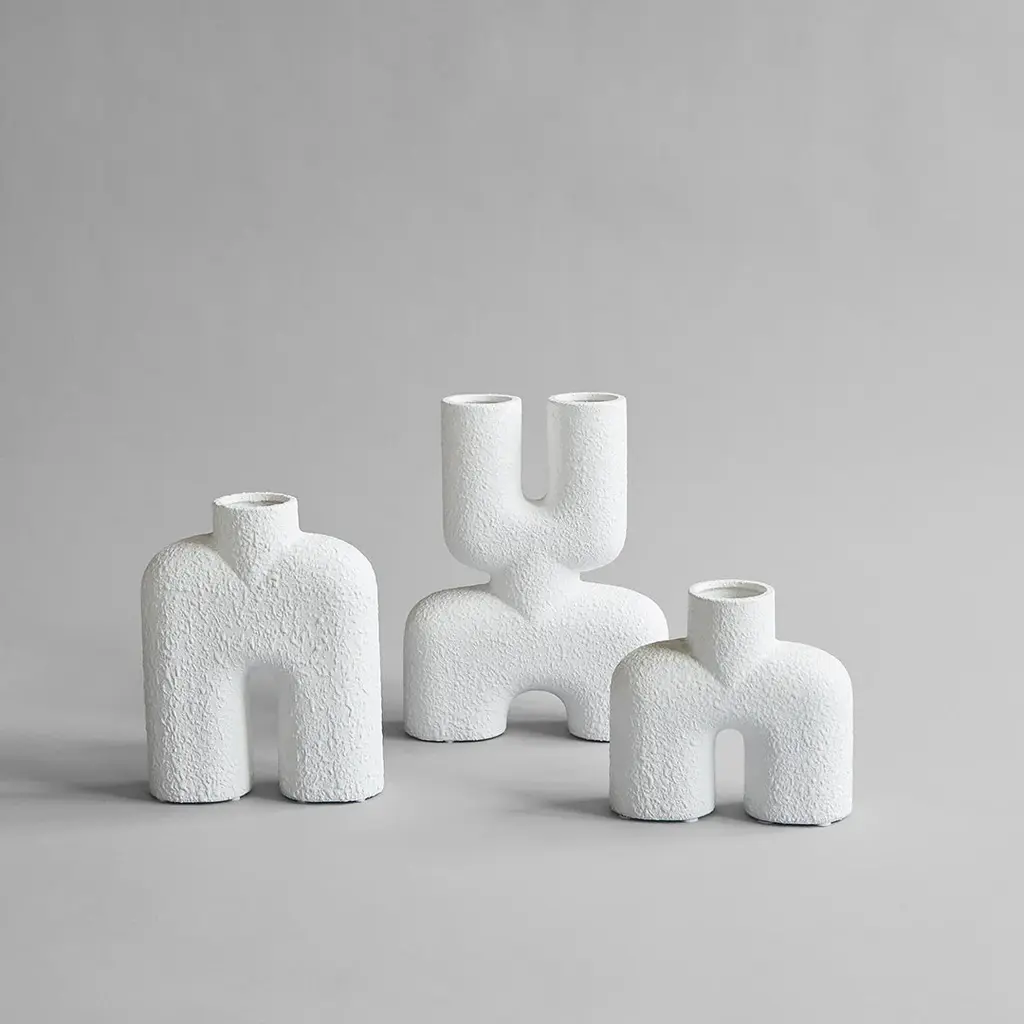 A tribute to the Cobra Arts Movement of the 1960s, the collection is the epitome of quirky vases that will add joy to any interior setting. Think whimsical, soft and organic shapes unmistakably reminiscent of human silhouettes and curves. True to the Cobra artists way of working, the series takes its starting point in naive hand sketches leading to bodily silhouettes. As it is a hand glazed natural product, the colours may vary slightly and while it is not 100% waterproof, a bag for fresh flowers is included. Designed by Kristian Sofus Hansen & Tommy Hyldahl.