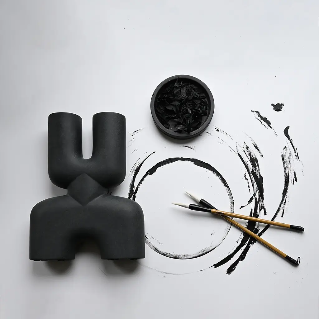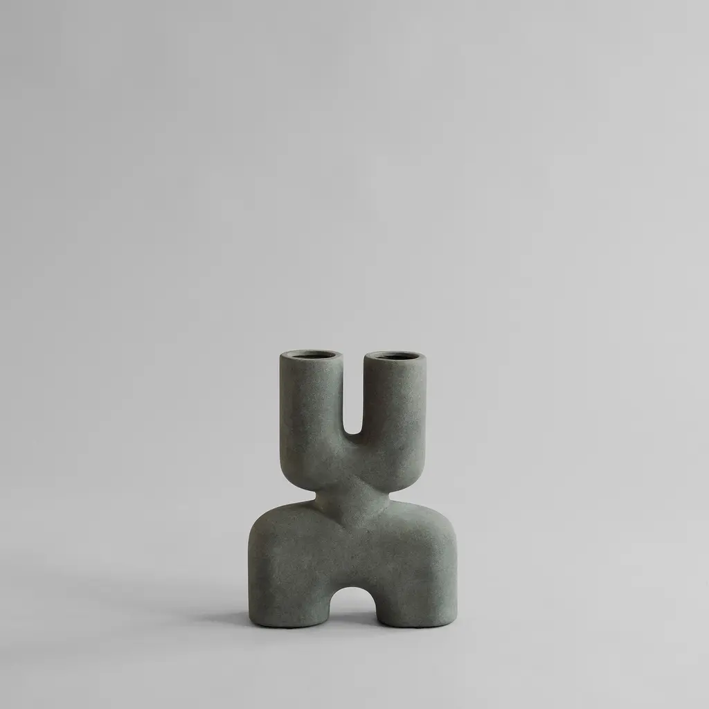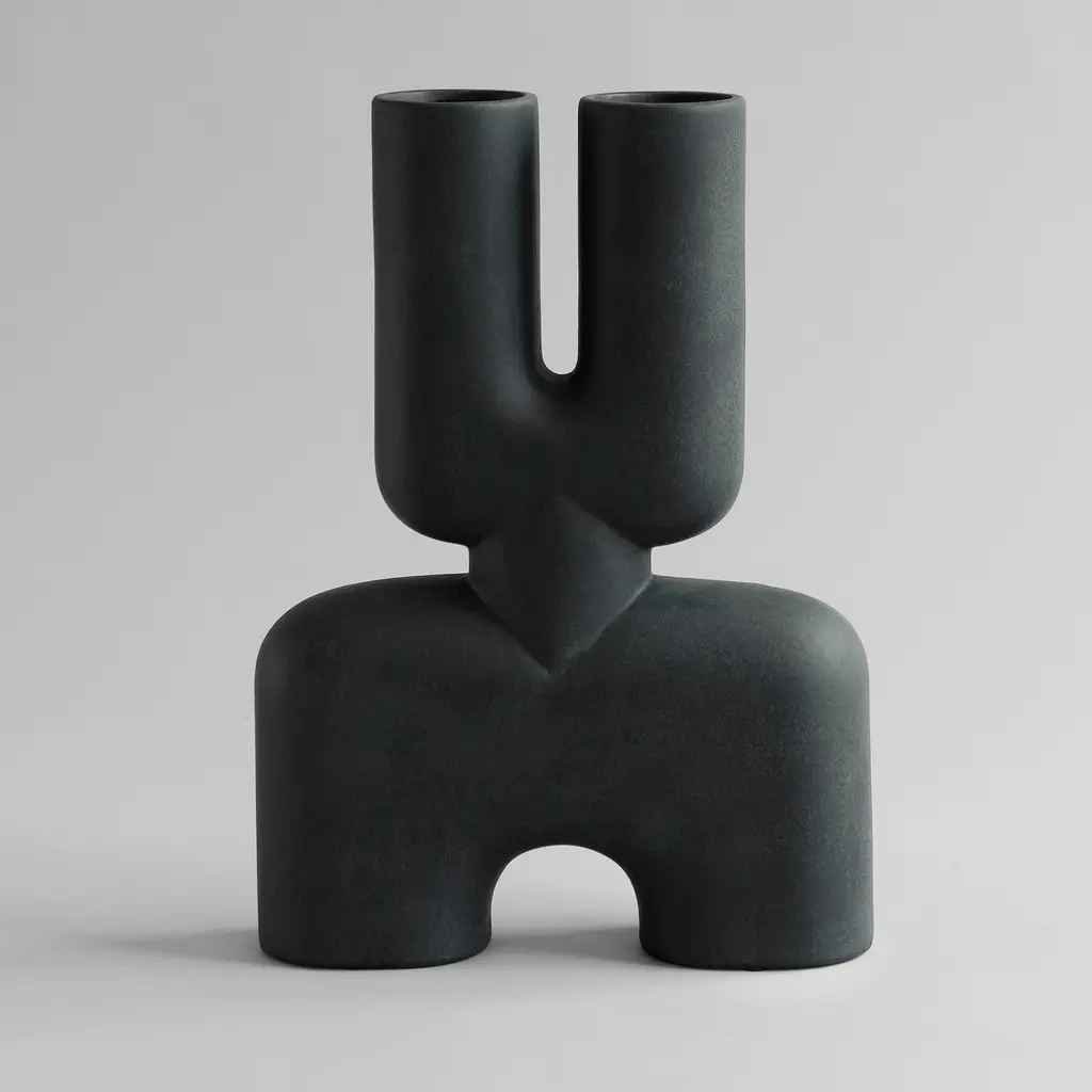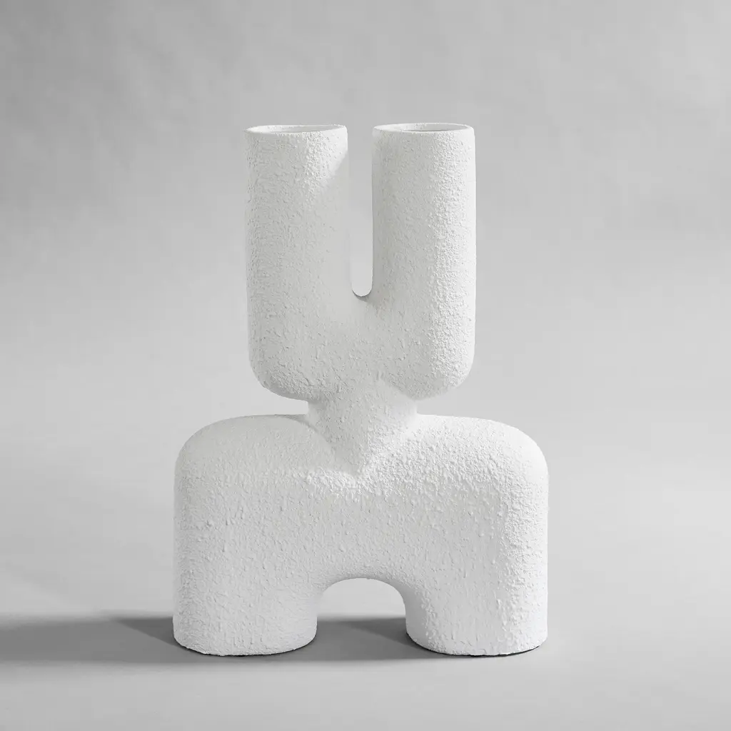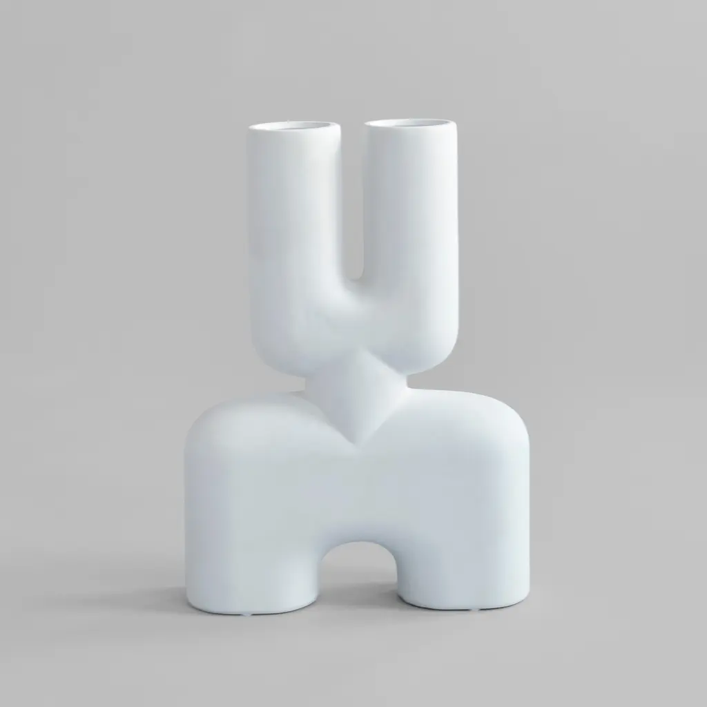 Paying homage to the avant-garde Cobra art group, the 101 Copenhagen Cobra Vase, Double looks like a quirky sculpture. Designers Kristian Sofus Hansen and Tommy Hyldahl created the vase according to Cobra principles, resulting in a whimsical design object that resembles a human figure. This version features two wide legs that provide stability and two tubular ‘hands’ arranged in an upright position. The separate openings allow you to arrange flowers in fun ways, whether you want to use the vase for different types of plants or a larger bouquet. Like other vases from the same series, Cobra Double is made from ceramic with a hand-glazed finish. Due to the handmade nature of the manufacturing process, these vases may feature slightly different colors. Not 100% waterproof, the 101 Copenhagen Cobra Vase, Double is best suited for dried plants, but you can use the included bag if you want to display fresh flowers.
