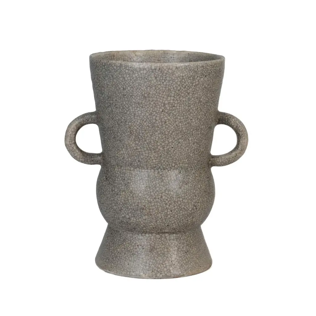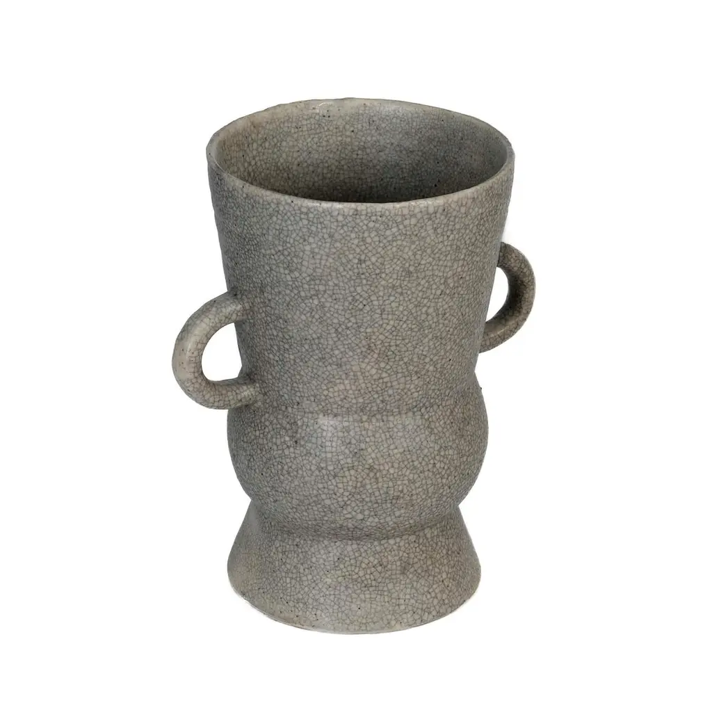 Cohiki Vetus vase II by Studio CúzeDimensions: W 23 x H 26 cmMaterials: ceramicThe Cohiki Vetus vase II conveys a unique flair and a very special kind of elegance. Equipped with two handles, the vase works in its own unique way. The idea of perfection through imperfection plays a leading role. Because the surface is deliberately kept uneven in parts and thus offers a unique feeling when touching. Here it is recommended to use a whole bouquet of flowers, or to place the vase as a pure decorative element. The Cohiki Ventus Vase II has been created in Berlin by Cúze. Each piece is unique.Studio CúzeI am a Berlin based Japanese ceramic artist. I completed the Design and Lab courses at Ishoken, and Tajimi City Pottery Design and Technical Centre.When I create, I do not think my objects are the leading part in the presentation of a meal. Rather the most important focus lies in the food, the artistic cuisine and its power to draw people together to enjoy it:it is the social aspect, rather than the product itself, that drives me to design. Therefore, I refers to my works as supporting actors; objects that exist naturally in our spatial environment.Many of my products are purposefully made large because I want people to come together using my products to join in the atmosphere and community of dining.