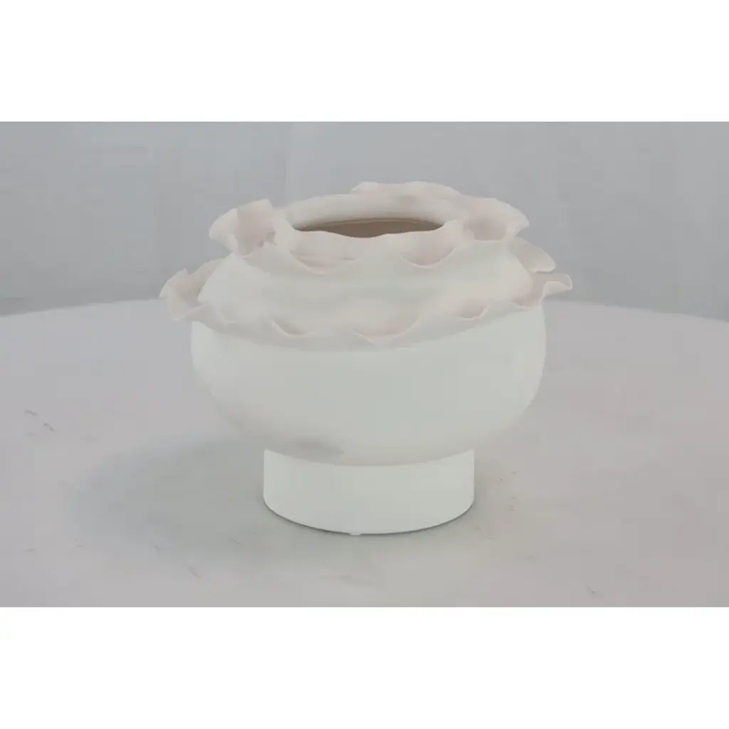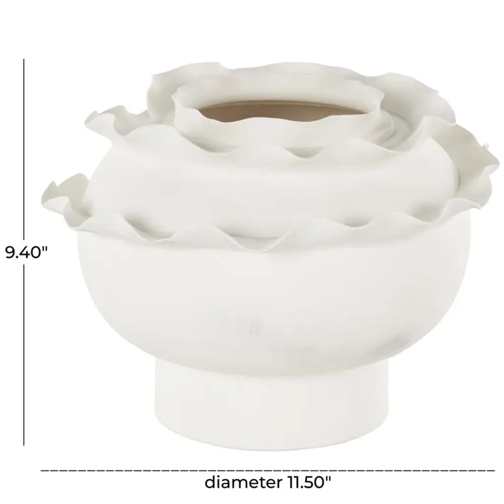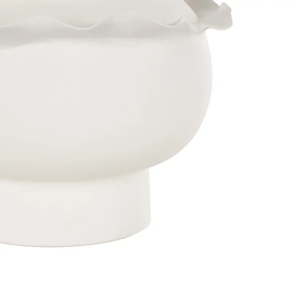 Add a dash of flair to your home with this character-filled ceramic table vase. Shaped like a cylinder, this distinctive piece is not only a vase but also a conversation starter. Bursting with personality, its whimsical ruffled design needs no excuse to shine, even when not filled with your favorite blooms. Crafted for indoor use and watertight, this vase is ready to take center stage in your decor. It's more than just a vase, it's a style statement!