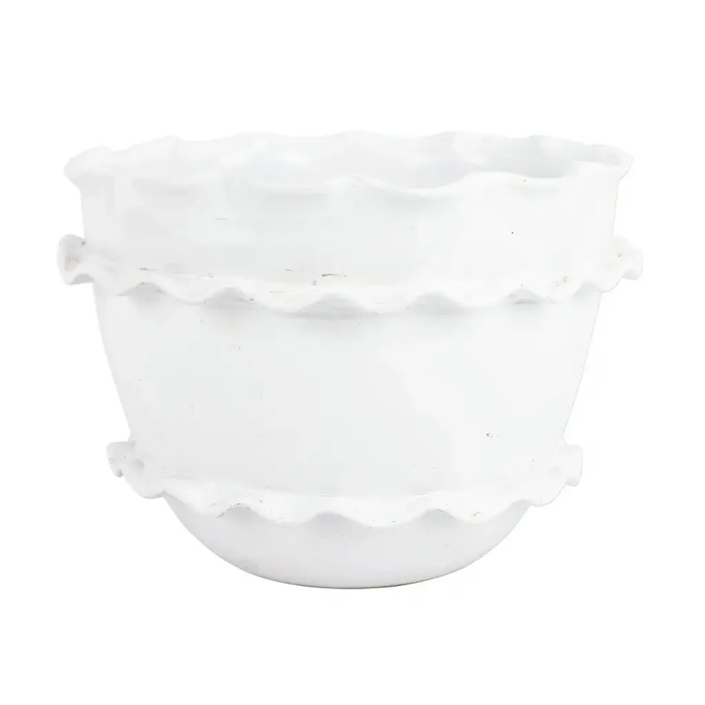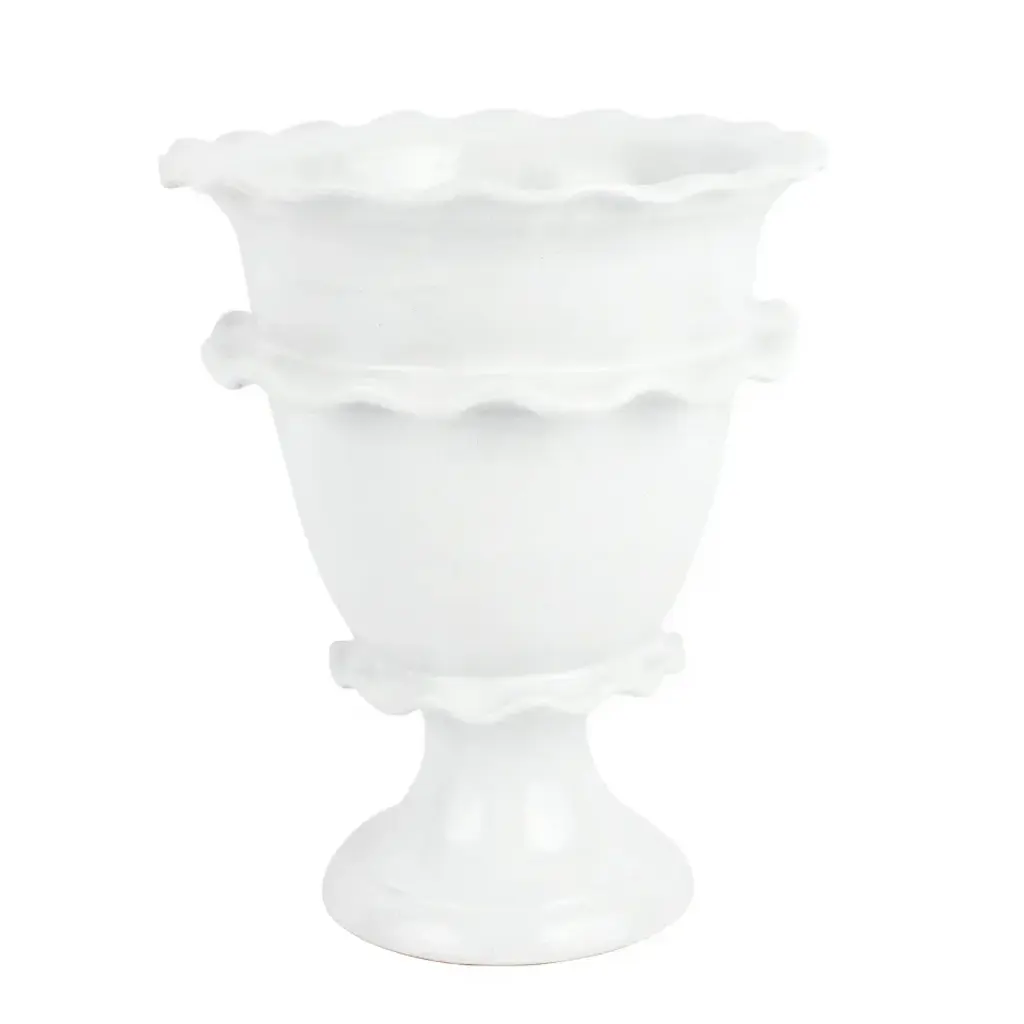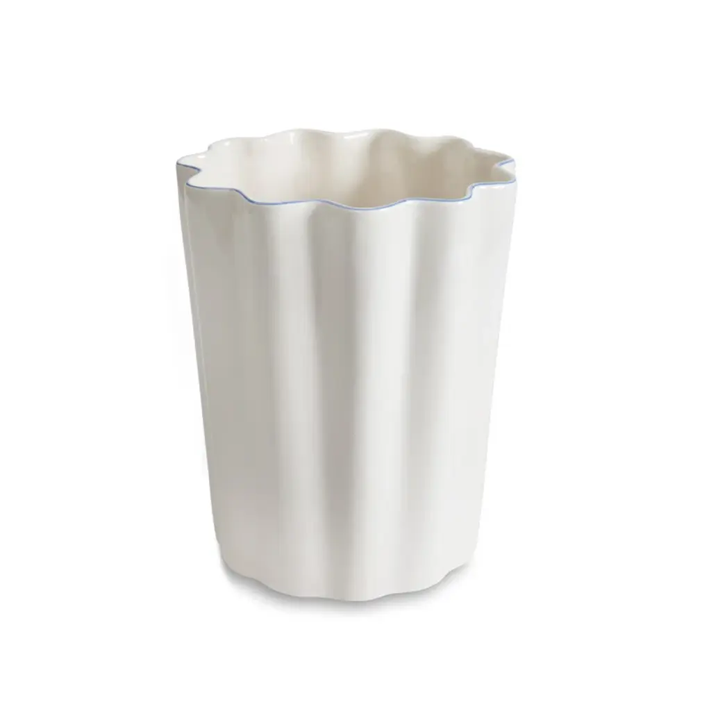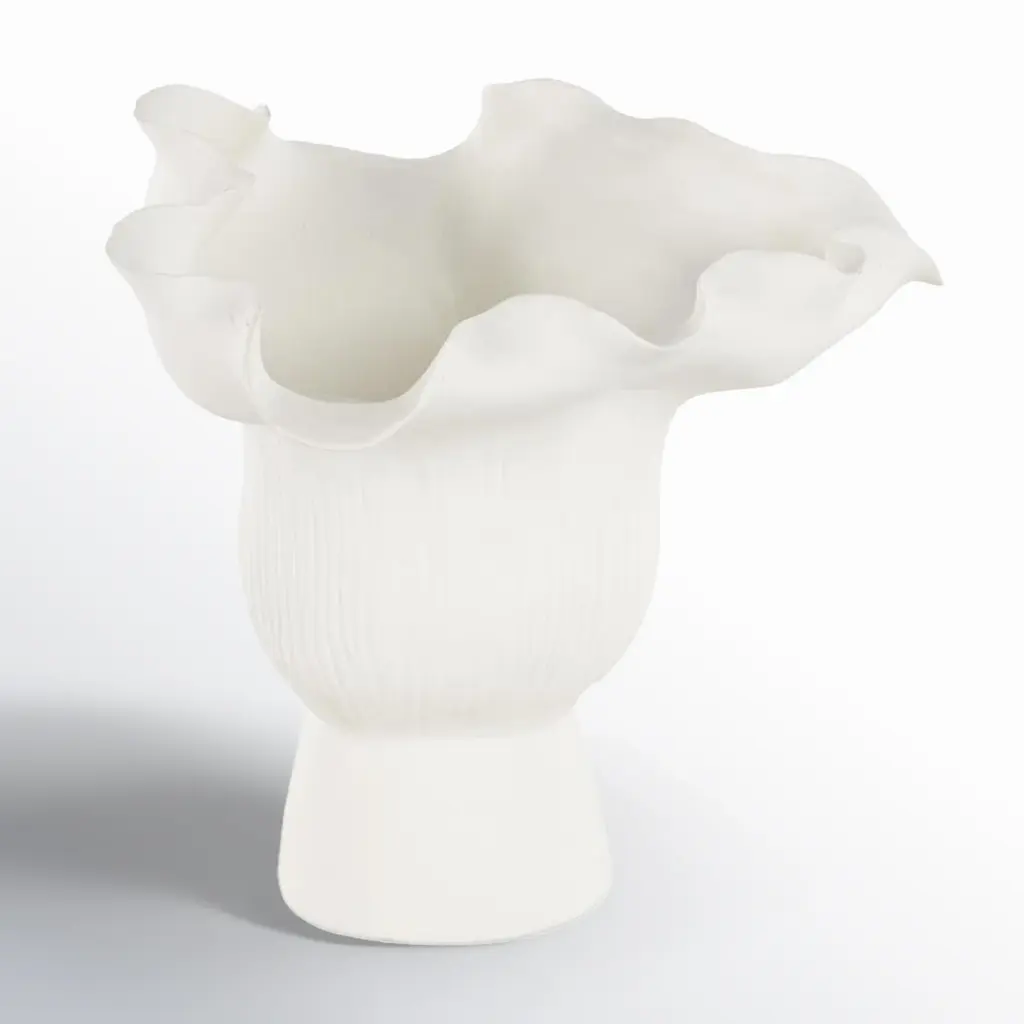 Add a dash of flair to your home with this character-filled ceramic table vase. Shaped like a cylinder, this distinctive piece is not only a vase but also a conversation starter. Bursting with personality, its whimsical ruffled design needs no excuse to shine, even when not filled with your favorite blooms. Crafted for indoor use and watertight, this vase is ready to take center stage in your decor. It's more than just a vase, it's a style statement!