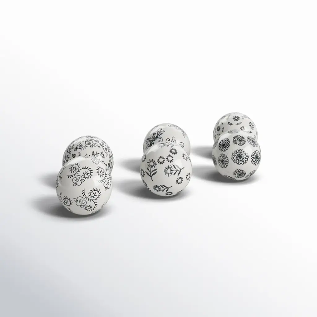 Cole And Grey Ceramic Handmade Glossy Decorative Ball Floral Orbs & Vase Filler With Black Floral And Scroll Patterns (Set Of 6)