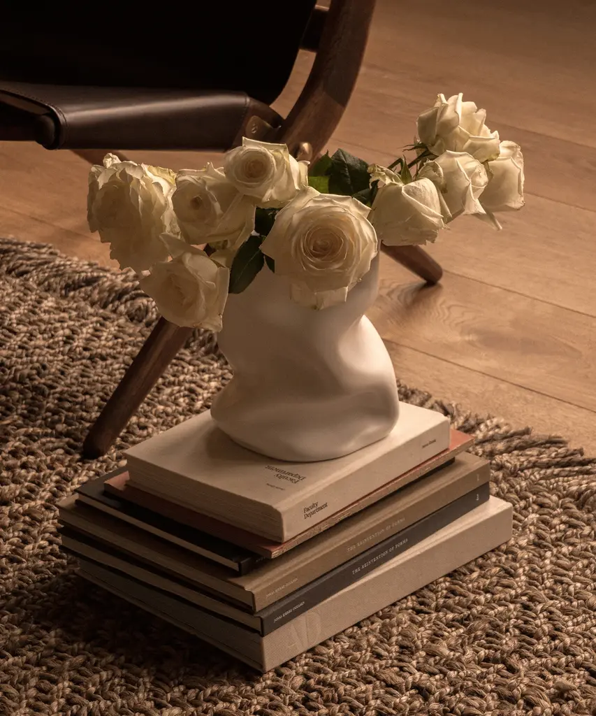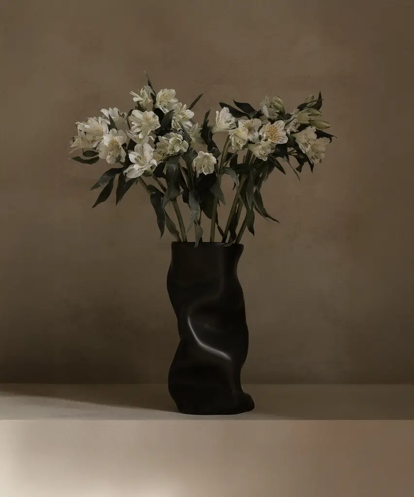 Drawing inspiration from the fluid drapes of fabric, the Collapse Vase has a soft, organic expression. Whether clustered, paired, or used alone, it lends sculptural beauty to modern spaces – with or without the addition of flowers. Each piece is unique due to the firing process. Designed by Sofia Tufvasson for Audo Copenhagen North America.