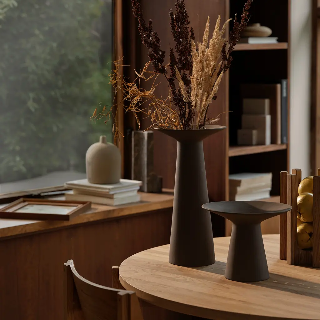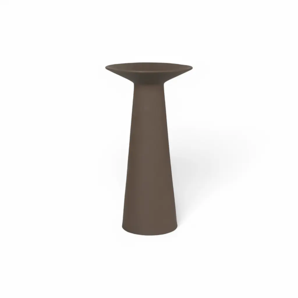 Even the most beautiful flowers will look better when arranged in the Kristina Dam Studio Collar Vase. Designed with a conical body and a wide circular opening, this vase is elegant, simple and sculptural. As a result, it offers the perfect solution to create gorgeous flower arrangements, whether you want to use fresh bouquets or dried plants. Made from high-quality terracotta, the Collar Vase boasts a matte brown finish with a smooth texture and a glazed interior that makes the porous material waterproof. This vase comes in two sizes, each with a distinct personality. Use them on individually or together to decorate your home with the beauty of nature.