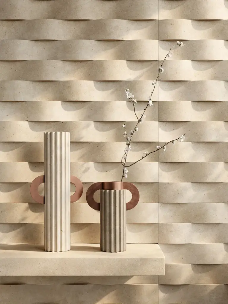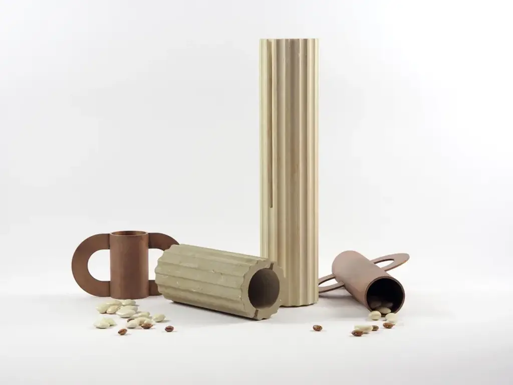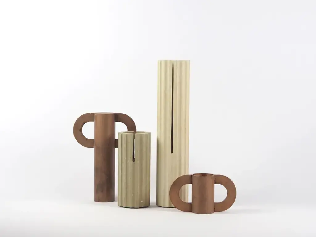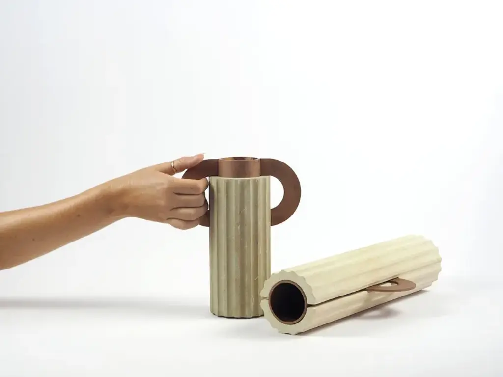 A collection of vases in Leccese Stone and etched iron that comes from the theme of the “discovery”; recovered from a distant past, they are revised in a contemporary way, stylized, reworked and renewed to rediscover their expressive power, amplifying their historical significance and the possibility of daily use.Meeting between stone and iron, connection between past and present, material and form. The stone bases are worked with numerical control, the iron component is etched and worked by hand.
